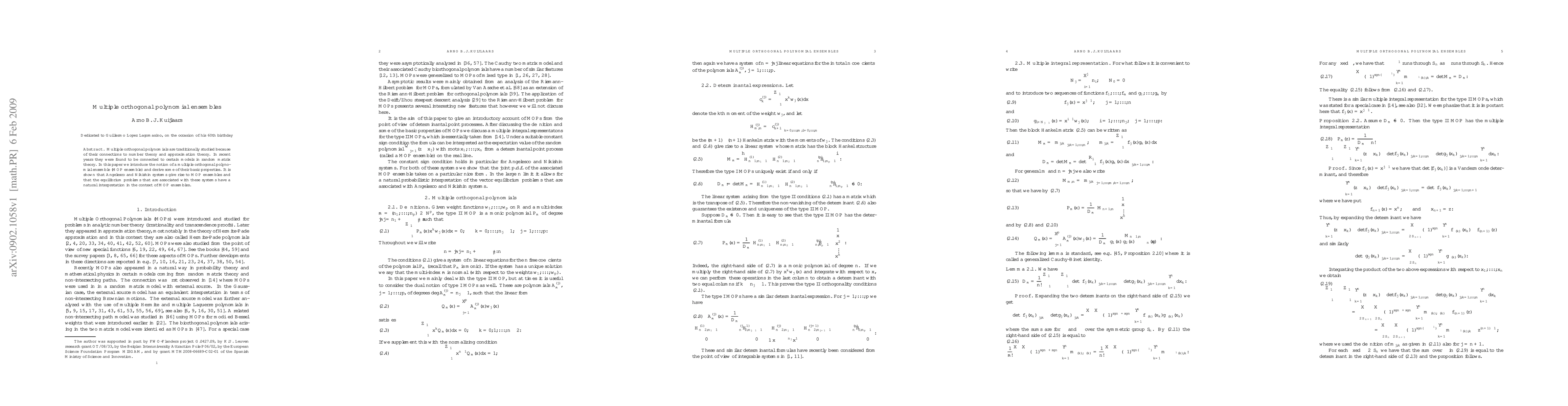 This paper introduces the concept of multiple orthogonal polynomial ensembles (MOP ensembles) and derives some fundamental properties. It demonstrates connections between Angelesco and Nikishin systems with MOP ensembles and links their equilibrium problems to MOP ensembles in random matrix theory.