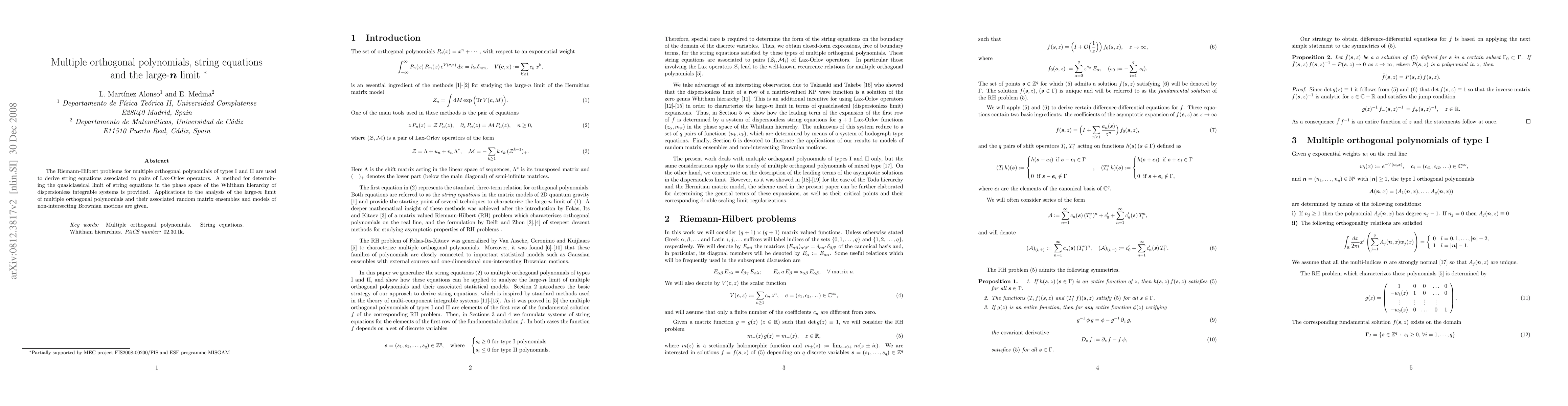 This paper explores the use of Riemann-Hilbert problems for multiple orthogonal polynomials to derive string equations linked to Lax-Orlov operators, providing a method for their quasiclassical limit. It applies these findings to analyze the large-n limit of multiple orthogonal polynomials and related random matrix ensembles and non-intersecting Brownian motions.