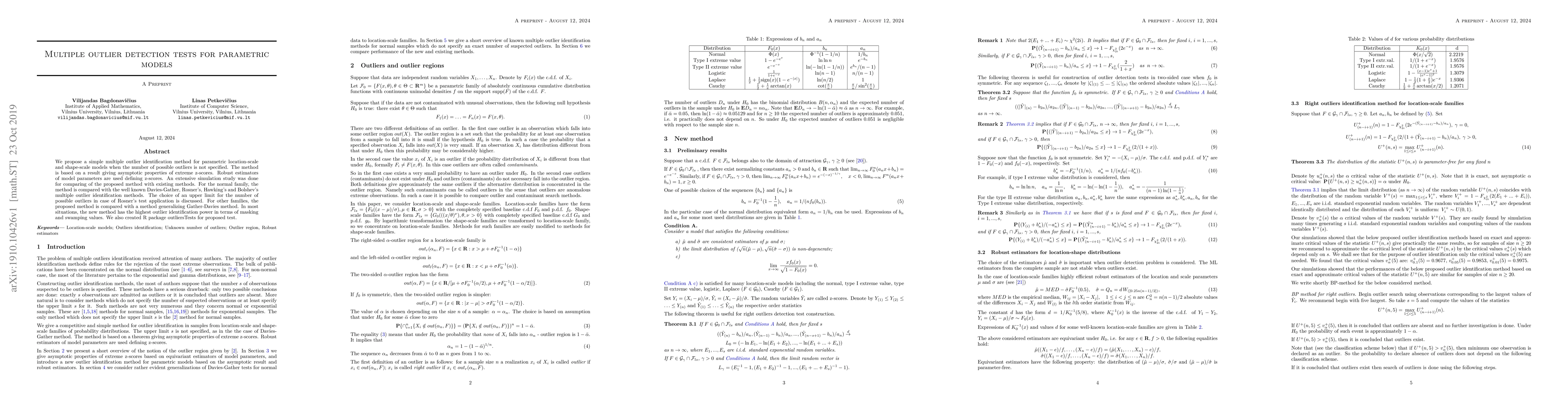 This paper introduces a novel multiple outlier detection method for parametric models, utilizing robust estimators and extreme z-scores. An extensive simulation study demonstrates superior performance compared to existing methods, including Davies-Gather, Rosner's, Hawking's, and Bolshev's tests, and an R package, outliersTests, was developed for implementation.