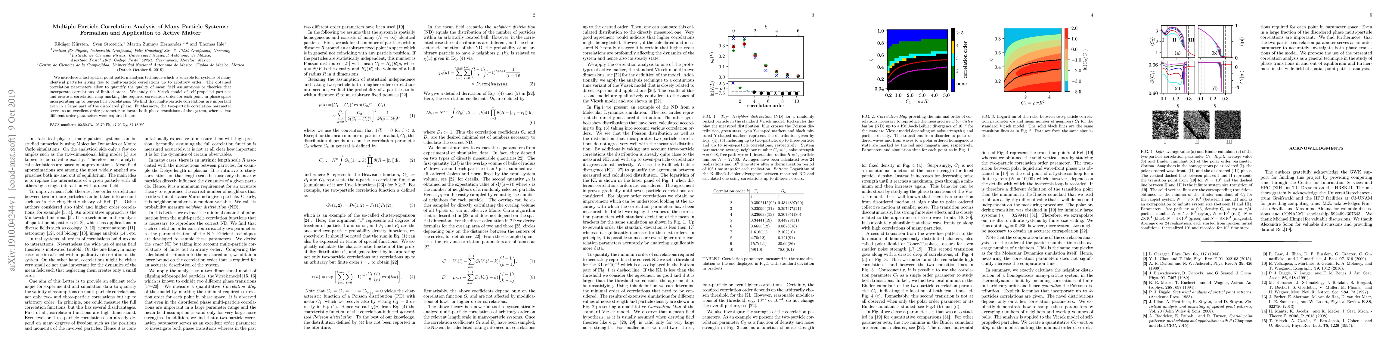 We introduce a fast spatial point pattern analysis technique which is suitable for systems of many identical particles giving rise to multi-particle correlations up to arbitrary order. The obtained correlation parameters allow to quantify the quality of mean field assumptions or theories that incorporate correlations of limited order. We study the Vicsek model of self-propelled particles and create a correlation map marking the required correlation order for each point in phase space incorporating up to ten-particle correlations. We find that multi-particle correlations are important even in a large part of the disordered phase. Furthermore, the two-particle correlation parameter serves as an excellent order parameter to locate both phase transitions of the system, whereas two different order parameters were required before.