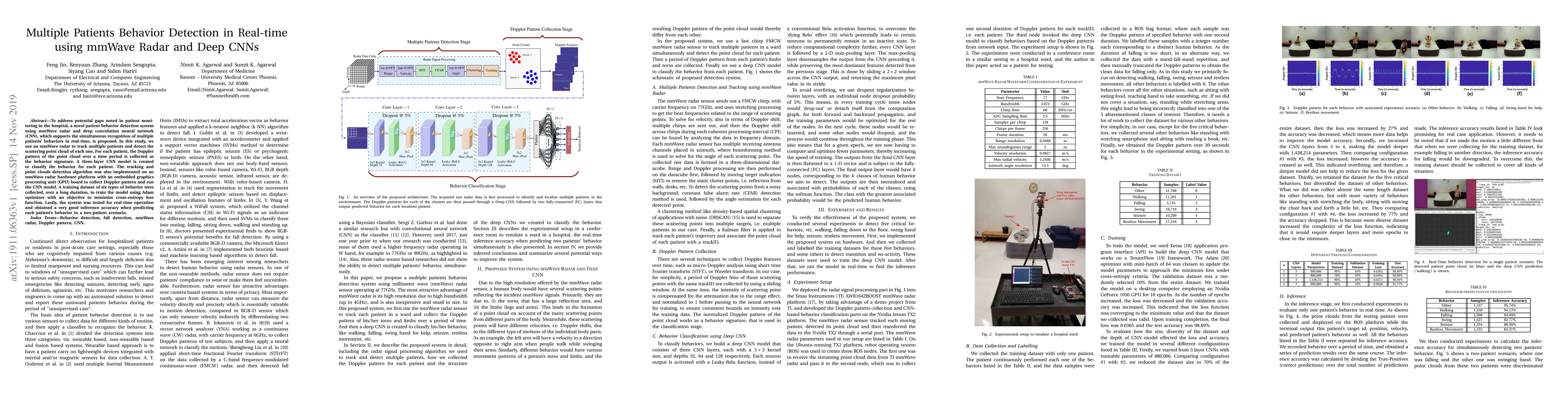 This paper proposes a real-time patient behavior detection system using mmWave radar and deep convolutional neural networks (CNNs) to simultaneously recognize multiple patients' behaviors. The system employs an mmWave radar to track patients and classify their behaviors based on Doppler patterns, achieving high inference accuracy in real-time scenarios.