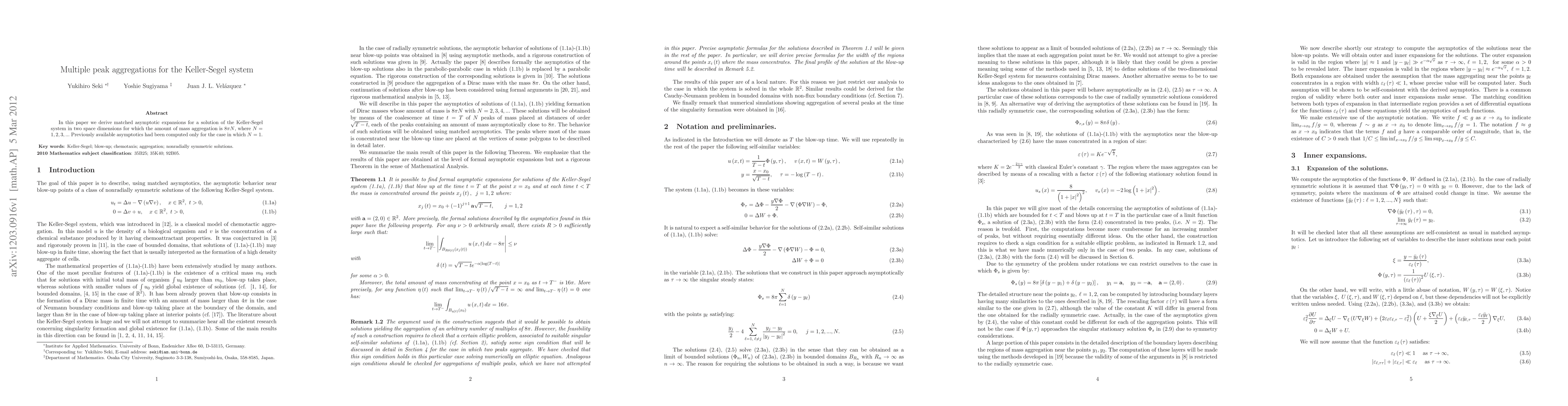 This paper develops matched asymptotic expansions for the Keller-Segel system in two dimensions, revealing multiple peak aggregations where the total mass aggregation equals $8\pi N$ for integer values of $N$. This extends prior work that only covered the case $N=1$.