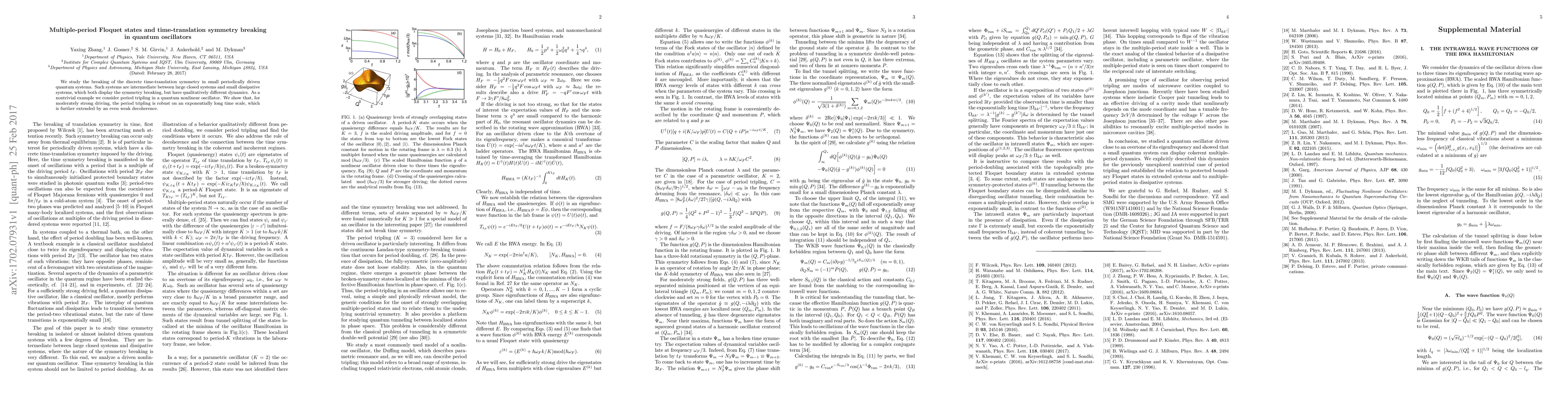 This paper investigates the breaking of discrete time-translation symmetry in periodically driven quantum oscillators, focusing on period tripling in a nonlinear system. The study reveals that under moderate driving, the tripling effect is robust and persists for exponentially long times, even with slight decoherence.