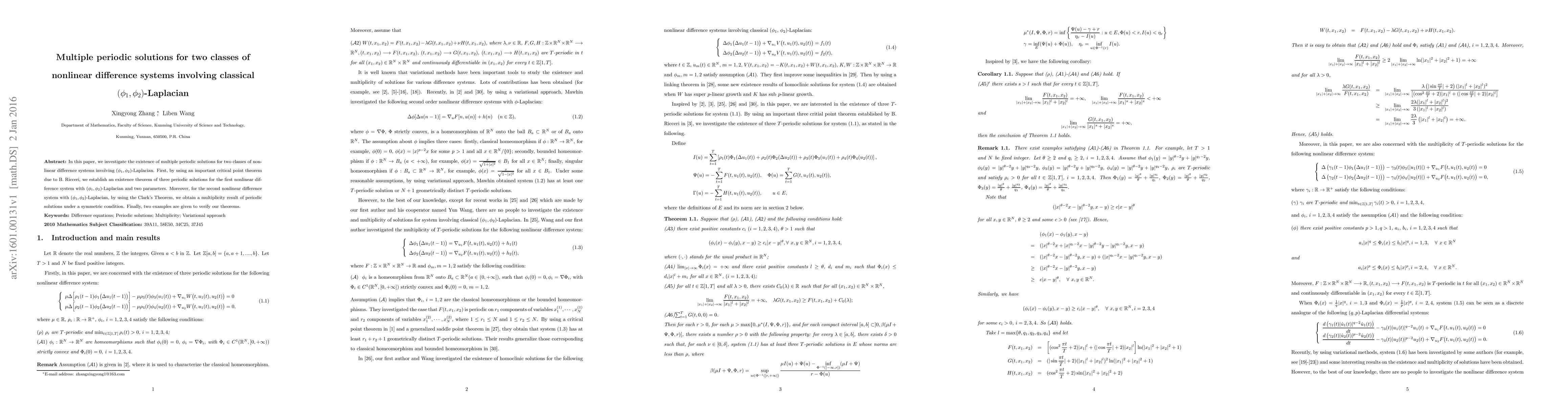 This paper explores the existence of multiple periodic solutions for two classes of nonlinear difference systems using $(\phi_1,\phi_2)$-Laplacian operators. It establishes three periodic solutions for the first system via B. Ricceri's critical point theorem and multiple periodic solutions for the second system using Clark's Theorem under symmetric conditions.
