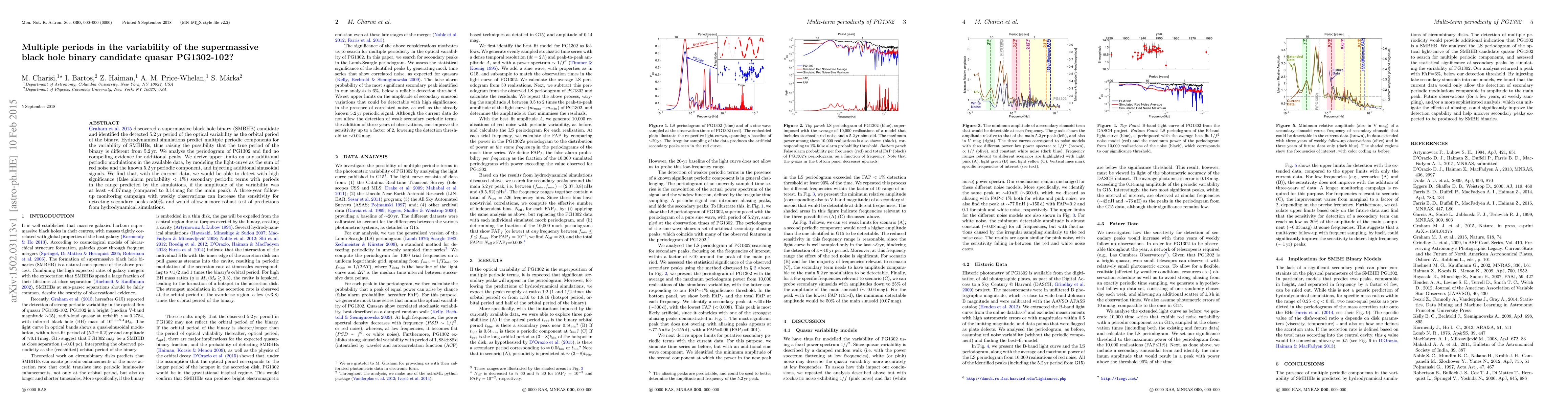Graham et al. (2015) identified a 5.2-year period in the optical variability of the SMBHB candidate PG1302-102, but simulations suggest multiple periods may exist. Analysis of the periodogram found no additional peaks, but with current data, secondary periodic signals of at least 0.07 mag could be detected.