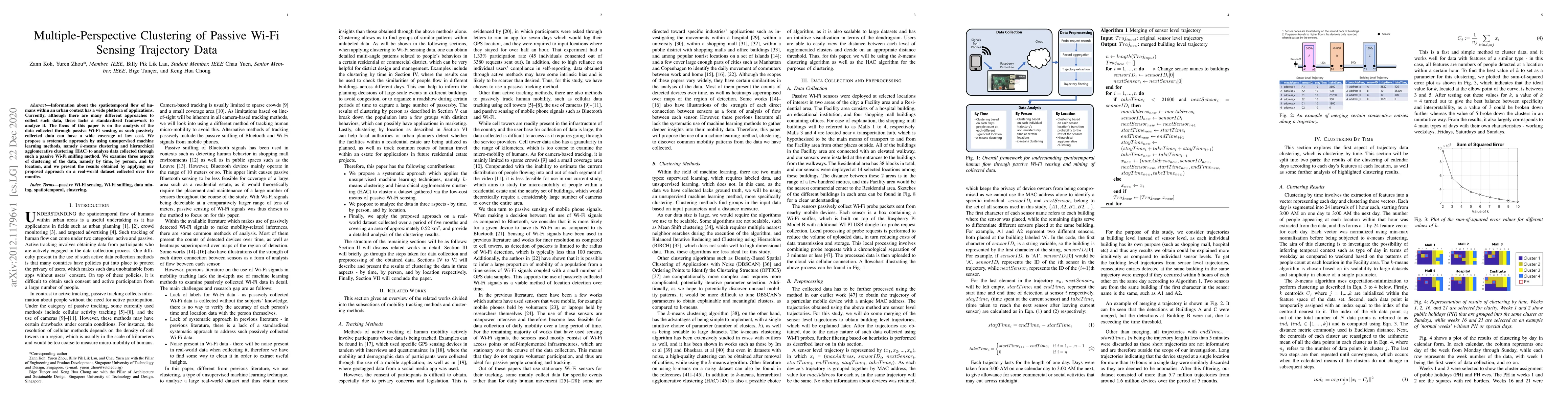 Information about the spatiotemporal flow of humans within an urban context has a wide plethora of applications. Currently, although there are many different approaches to collect such data, there lacks a standardized framework to analyze it. The focus of this paper is on the analysis of the data collected through passive Wi-Fi sensing, as such passively collected data can have a wide coverage at low cost. We propose a systematic approach by using unsupervised machine learning methods, namely k-means clustering and hierarchical agglomerative clustering (HAC) to analyze data collected through such a passive Wi-Fi sniffing method. We examine three aspects of clustering of the data, namely by time, by person, and by location, and we present the results obtained by applying our proposed approach on a real-world dataset collected over five months.