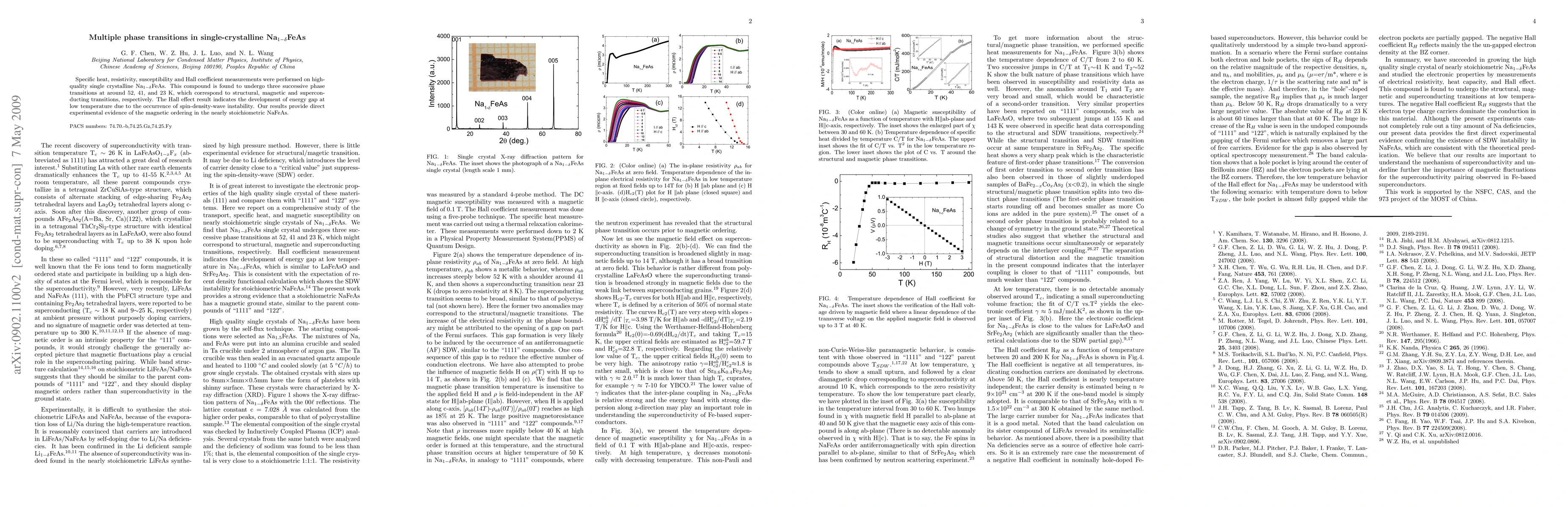 This study reveals three phase transitions in single-crystalline Na$_{1-\delta}$FeAs at 52, 41, and 23 K corresponding to structural, magnetic, and superconducting transitions, respectively. Experimental evidence supports the magnetic ordering and spin-density-wave instability in nearly stoichiometric NaFeAs.