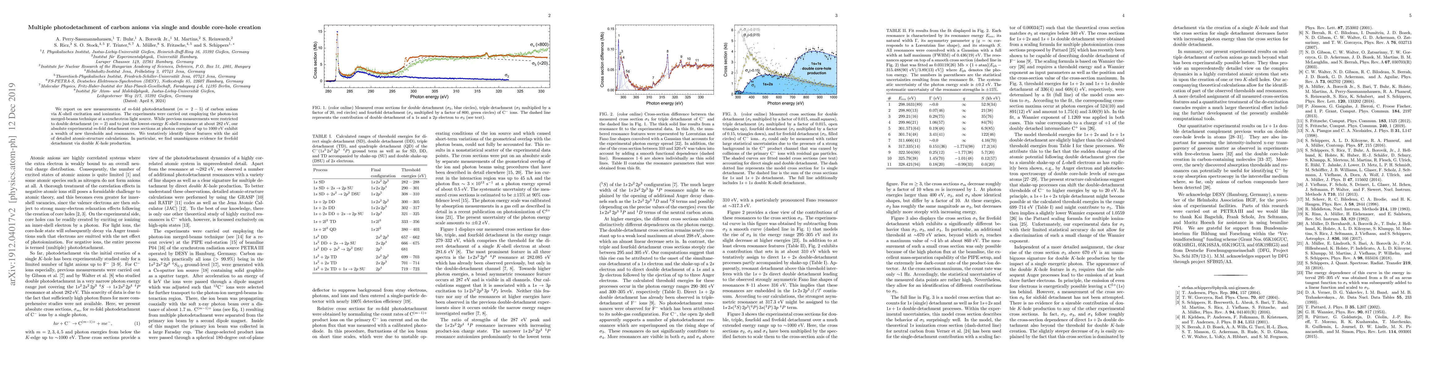 This research reports on new measurements of multi-photodetachment of carbon anions (m=2-5) through K-shell excitation and ionization, using the photon-ion merged-beams technique. The study reveals new thresholds and resonances in the detachment cross sections, providing evidence for fivefold detachment via double K-hole production.