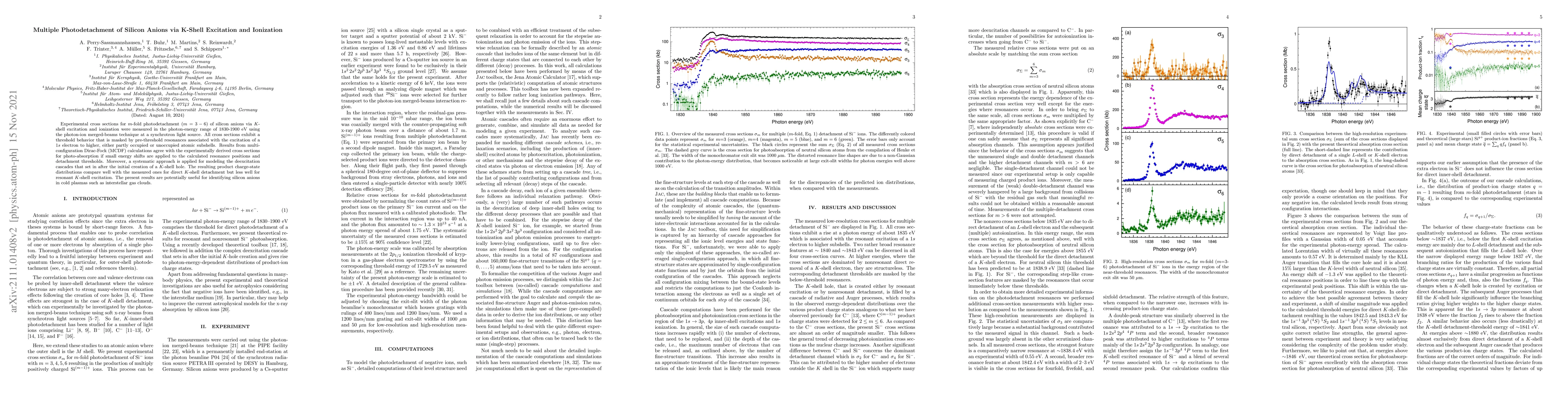 This study measures experimental cross sections for multiple photodetachment of silicon anions via K-shell excitation and ionization, finding threshold behavior masked by pre-threshold resonances. Theoretical modeling using MCDF calculations aligns well with the experimental data, aiding in understanding charge-state distributions.