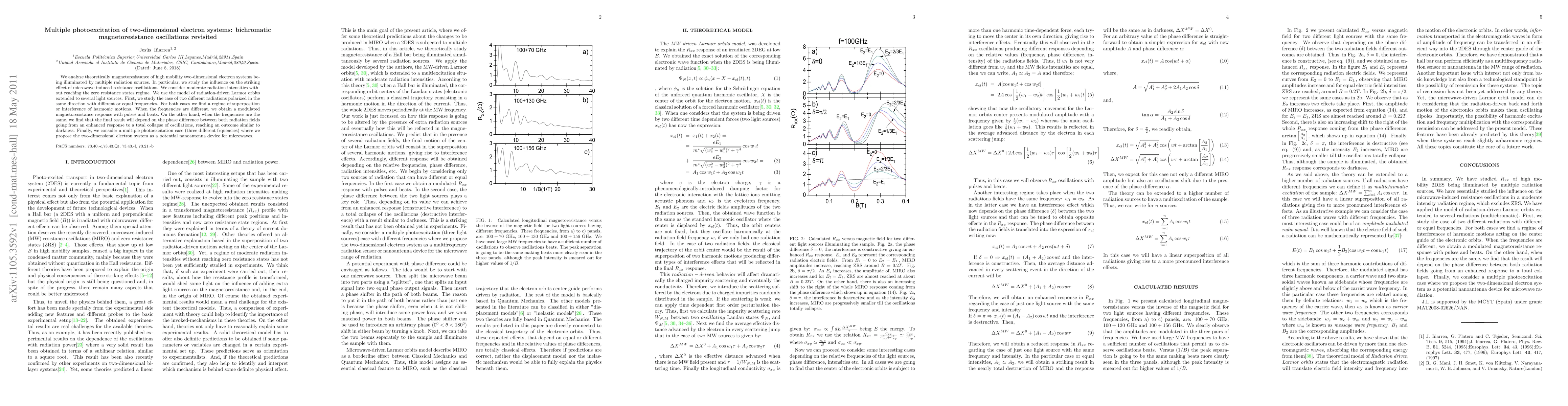 We analyze theoretically magnetoresistance of high mobility two-dimensional electron systems being illuminated by multiple radiation sources. In particular, we study the influence on the striking effect of microwave-induced resistance oscillations. We consider moderate radiation intensities without reaching the zero resistance states regime. We use the model of radiation-driven Larmor orbits extended to several light sources. First, we study the case of two different radiations polarized in the same direction with different or equal frequencies. For both cases we find a regime of superposition or interference of harmonic motions. When the frequencies are different, we obtain a modulated magnetoresistance response with pulses and beats. On the other hand, when the frequencies are the same, we find that the final result will depend on the phase difference between both radiation fields going from an enhanced response to a total collapse of oscillations, reaching an outcome similar to darkness. Finally, we consider a multiple photoexcitation case (three different frquencies) where we propose the two-dimensional electron system as a potential nanoantenna device for microwaves.