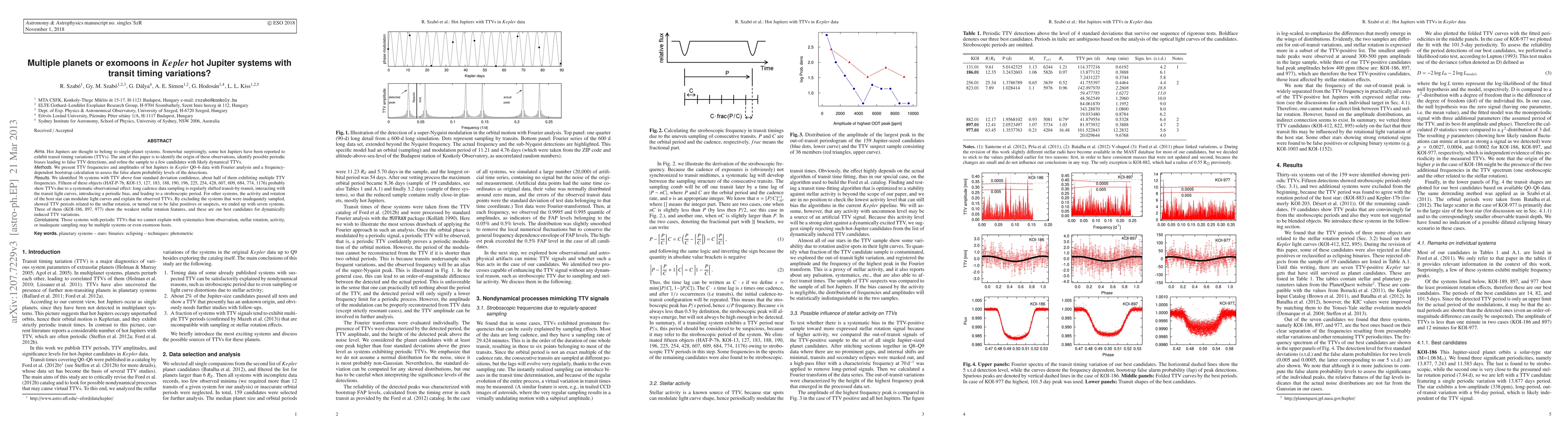 Research identifies 7 systems with transit timing variations that may indicate multiple planets or exomoons in hot Jupiter systems, contradicting the assumption of single-planet systems.