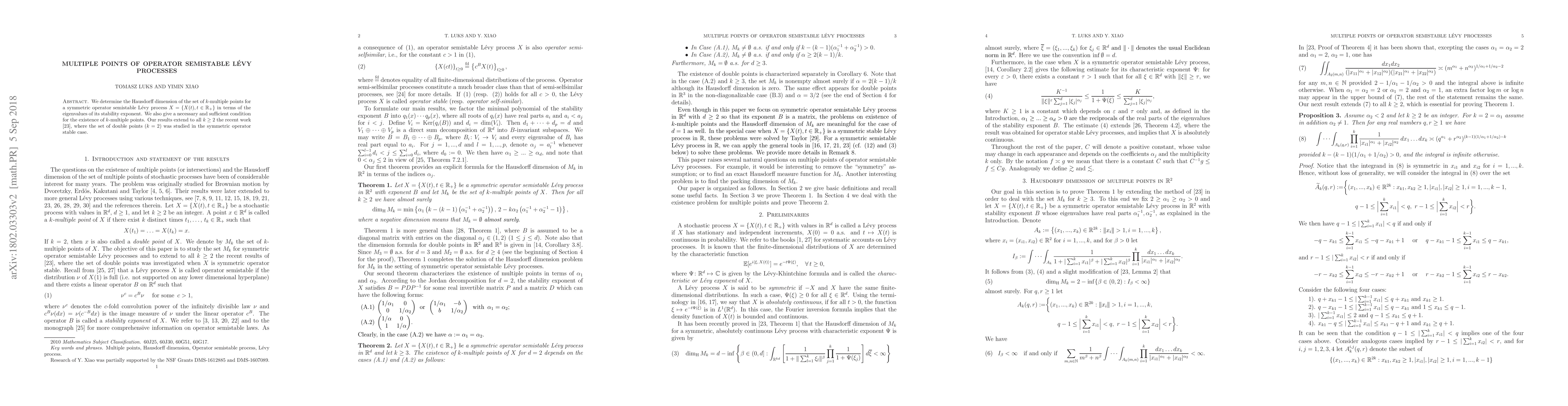 This paper determines the Hausdorff dimension of $k$-multiple points for symmetric operator semistable Lévy processes, linking it to the stability exponent's eigenvalues, and provides a necessary and sufficient condition for the existence of such $k$-multiple points, extending previous results for double points.