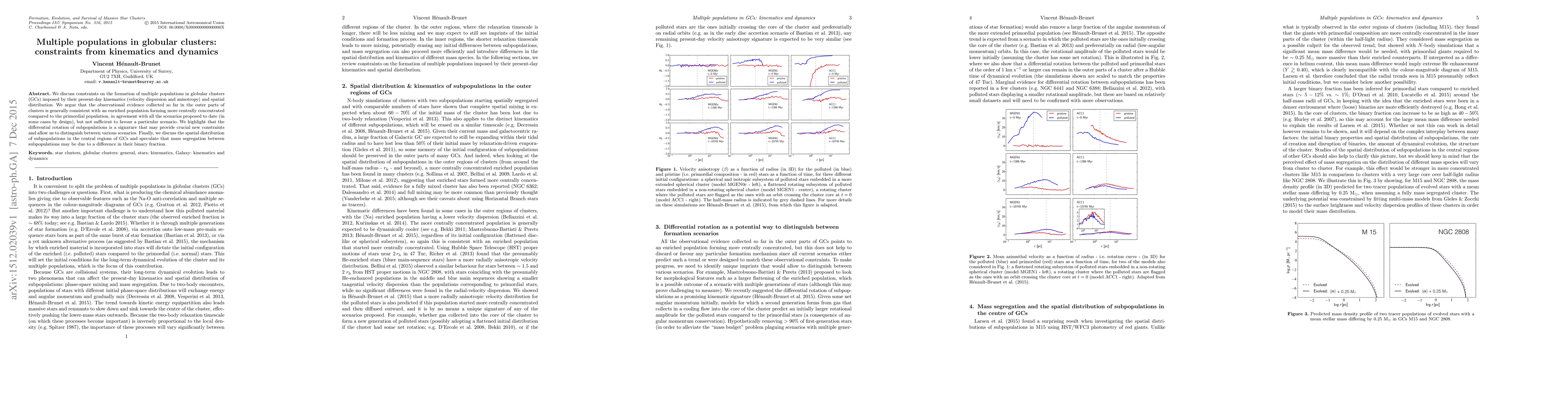 We discuss constraints on the formation of multiple populations in globular clusters (GCs) imposed by their present-day kinematics (velocity dispersion and anisotropy) and spatial distribution. We argue that the observational evidence collected so far in the outer parts of clusters is generally consistent with an enriched population forming more centrally concentrated compared to the primordial population, in agreement with all the scenarios proposed to date (in some cases by design), but not sufficient to favour a particular scenario. We highlight that the differential rotation of subpopulations is a signature that may provide crucial new constraints and allow us to distinguish between various scenarios. Finally, we discuss the spatial distribution of subpopulations in the central regions of GCs and speculate that mass segregation between subpopulations may be due to a difference in their binary fraction.