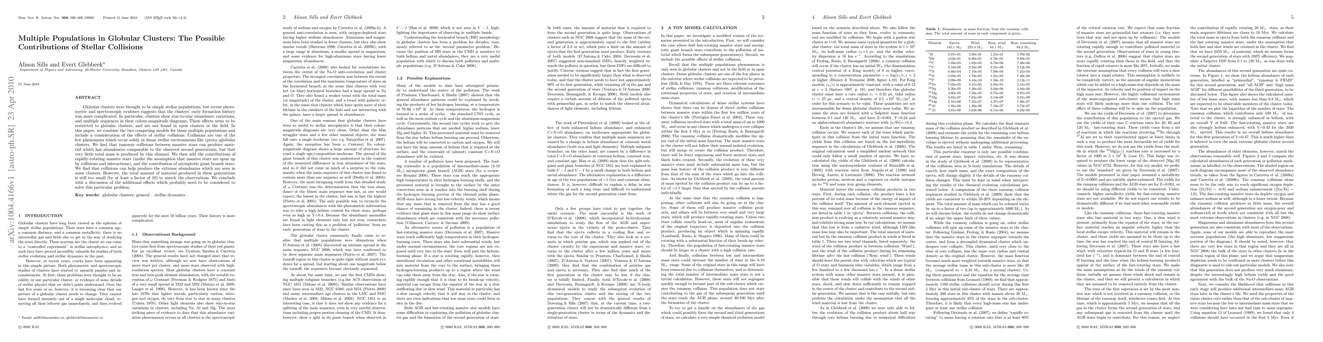 This paper explores the complexity of globular clusters' stellar populations, suggesting that stellar collisions contribute to the observed abundance variations and multiple sequences. While collisions can produce extreme abundances, they alone cannot account for the total observed second-generation stars, indicating other mechanisms are likely involved.
