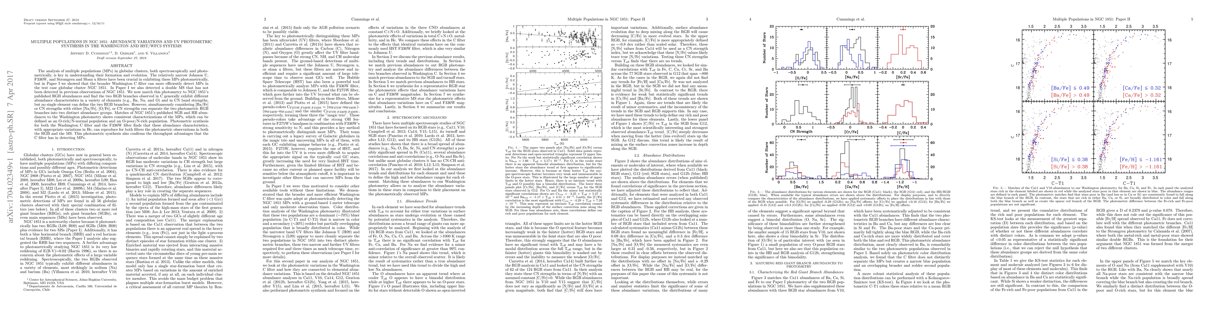 A study on globular cluster NGC 1851 reveals two distinct populations with different abundance characteristics, which can be separated using specific element ratios or CN band strengths. Photometric synthesis confirms these findings and highlights the advantages of using the Washington C filter in detecting population variations.
