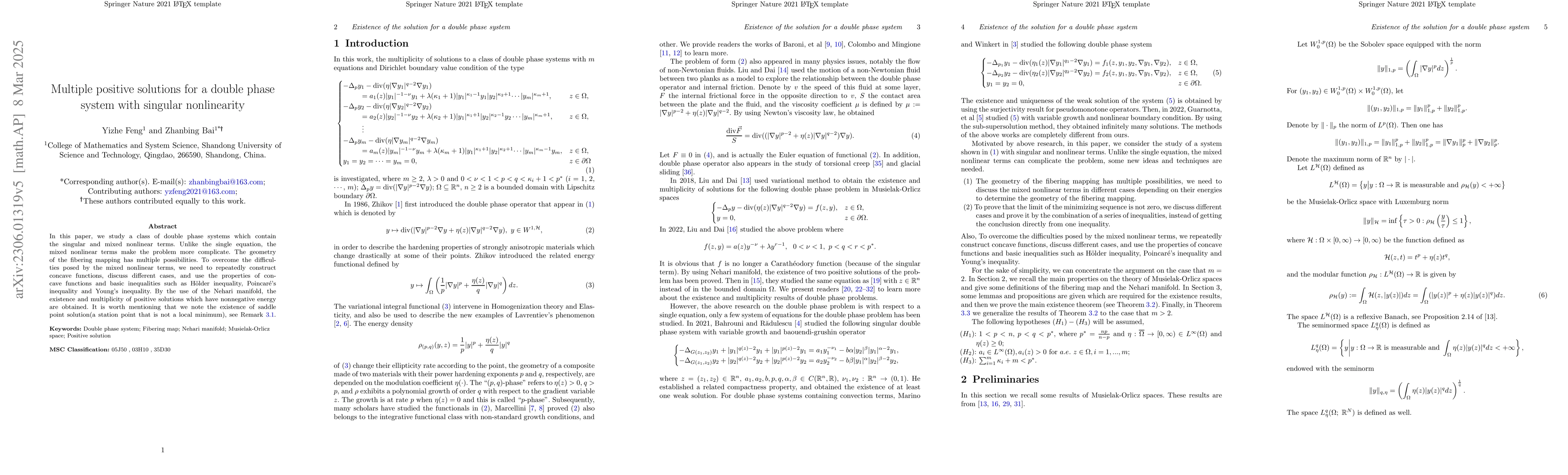 In this paper, we study a class of double phase systems which contain the singular and mixed nonlinear terms. Unlike the single equation, the mixed nonlinear terms make the problem more complicate. The geometry of the fibering mapping has multiple possibilities. To overcome the difficulties posed by the mixed nonlinear terms, we need to repeatedly construct concave functions, discuss different cases, and use the properties of concave functions and basic inequalities such as H\"{o}lder inequality, Poincar\'{e}'s inequality and Young's inequality. By the use of the Nehari manifold, the existence and multiplicity of positive solutions which have nonnegative energy are obtained.