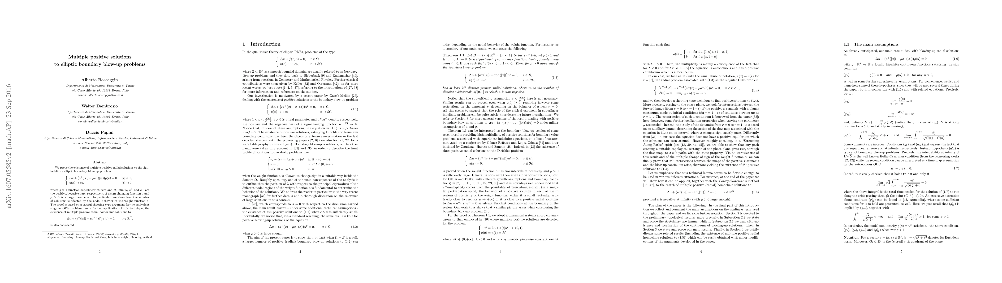 This paper proves the existence of multiple positive radial solutions to a sign-indefinite elliptic boundary blow-up problem, demonstrating how the nodal behavior of the weight function influences the number of solutions. The proof employs a shooting-type argument for the associated singular ODE problem.