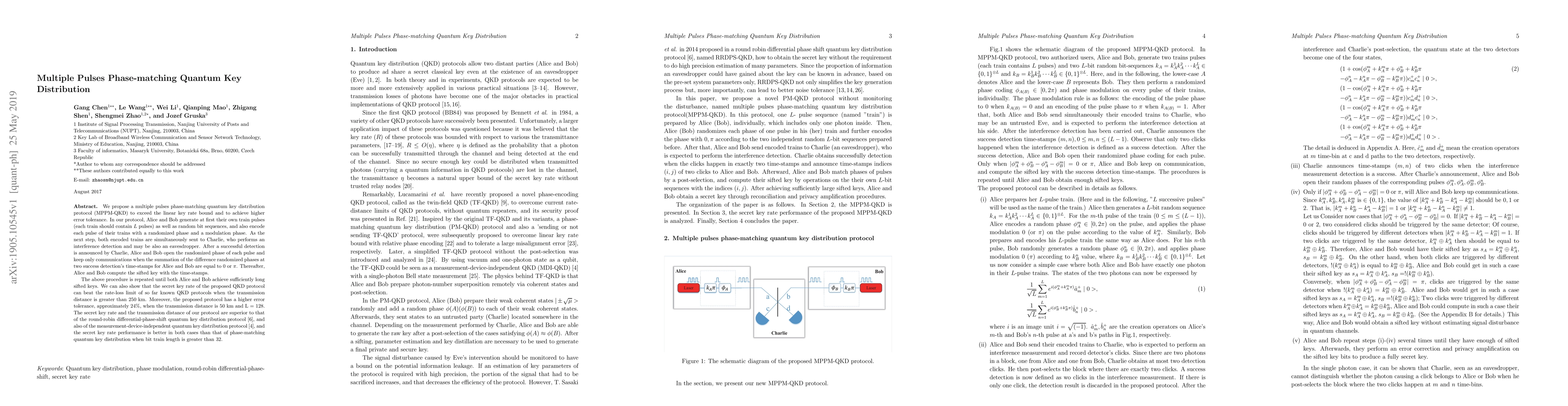 Researchers propose a new quantum key distribution protocol called Multiple Pulses Phase-matching QKD that exceeds linear key rate bounds and achieves higher error tolerance, surpassing existing protocols for long-distance transmission.