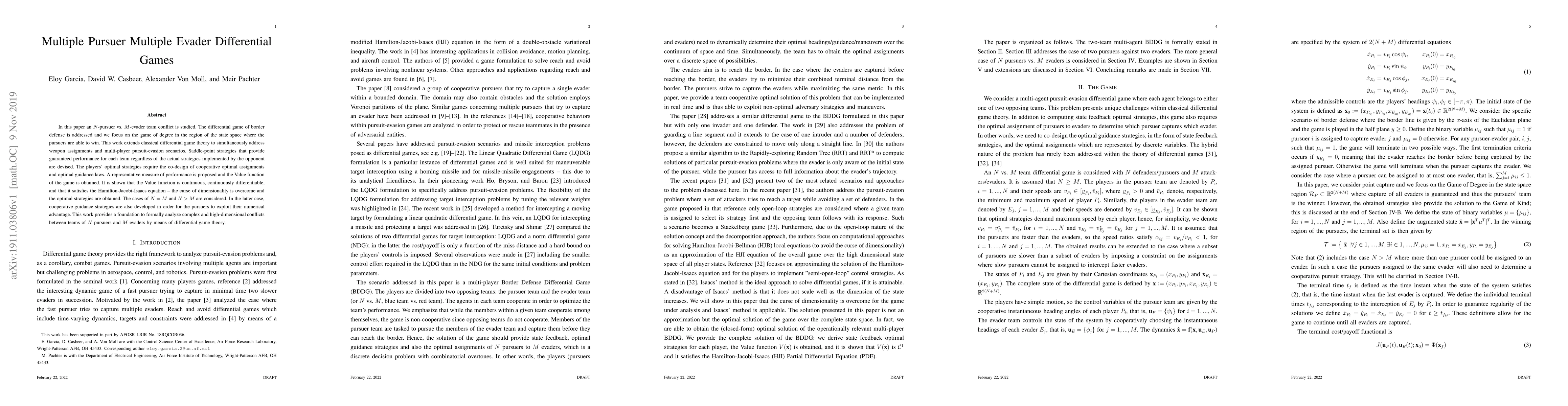 Researchers develop a new framework for analyzing conflicts between N pursuers and M evaders using differential game theory, providing guaranteed performance strategies and cooperative guidance laws.