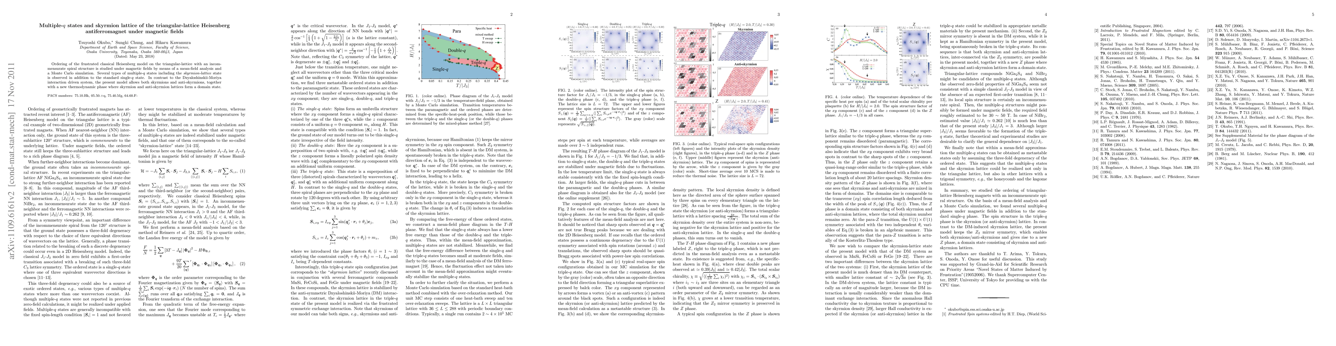 This paper investigates the triangular-lattice Heisenberg antiferromagnet under magnetic fields, revealing multiple-q states and a skyrmion lattice through mean-field analysis and Monte Carlo simulations. Unlike systems driven by Dzyaloshinskii-Moriya interactions, this model supports both skyrmions and anti-skyrmions, along with a novel domain state of skyrmion-antiskyrmion lattices.