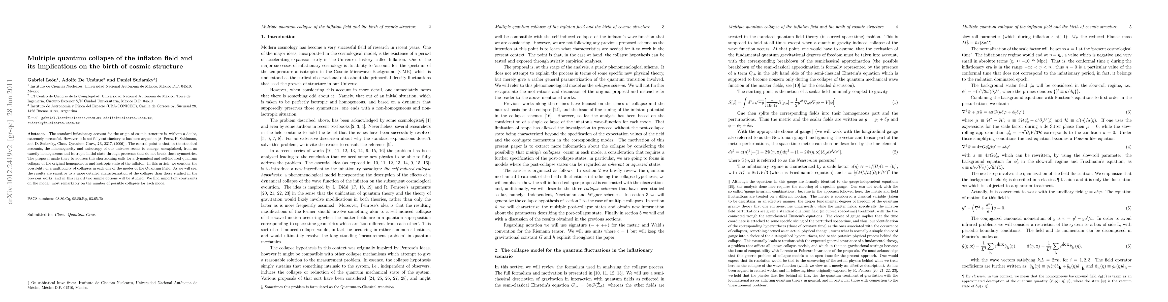 The standard inflationary account for the origin of cosmic structure is, without a doubt, extremely successful. However, it is not fully satisfactory as has been argued in [A. Perez, H. Sahlmann, and D. Sudarsky, Class. Quantum Grav., 23, 2317, (2006), arXiv:gr-qc/0508100]. The central point is that, in the standard accounts, the inhomogeneity and anisotropy of our universe seems to emerge, unexplained, from an exactly homogeneous and isotropic initial state through processes that do not break those symmetries. The proposal made there to address this shortcoming calls for a dynamical and self-induced quantum collapse of the original homogeneous and isotropic state of the inflaton. In this article, we consider the possibility of a multiplicity of collapses in each one of the modes of the Quantum Field. As we will see, the results are sensitive to a more detailed characterization of the collapse than those studied in the previous works, and in this regard two simple options will be studied. We find important constraints on the model, most remarkably on the number of possible collapses for each mode.