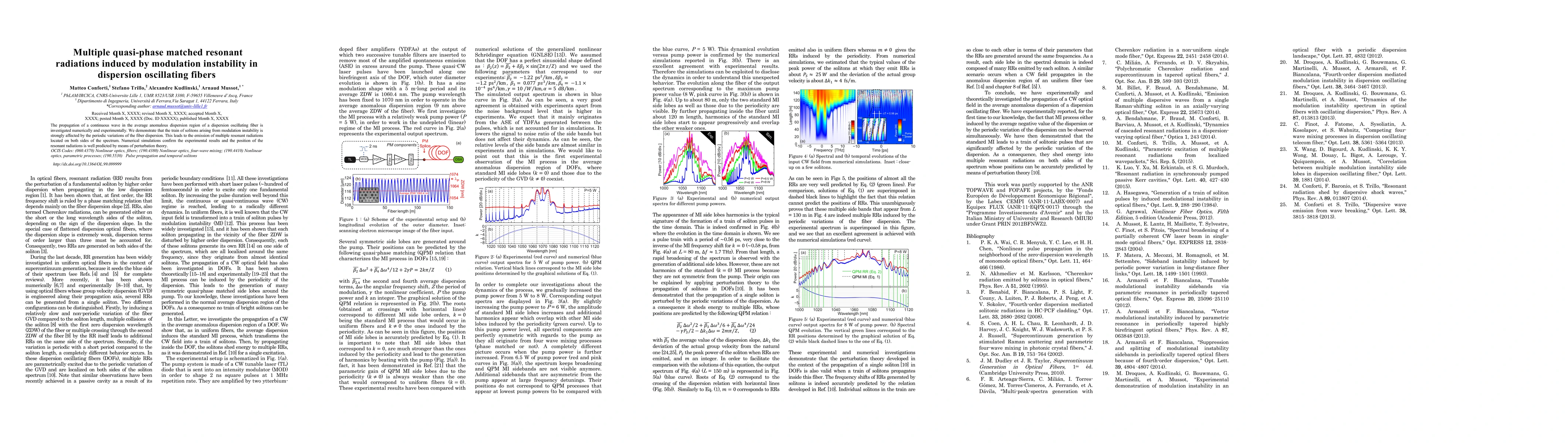 This paper investigates the emission of multiple resonant radiations from modulation instability in dispersion oscillating fibers, demonstrating both numerically and experimentally that periodic dispersion variations induce these emissions. Perturbation theory accurately predicts the positions of the observed resonant radiations.