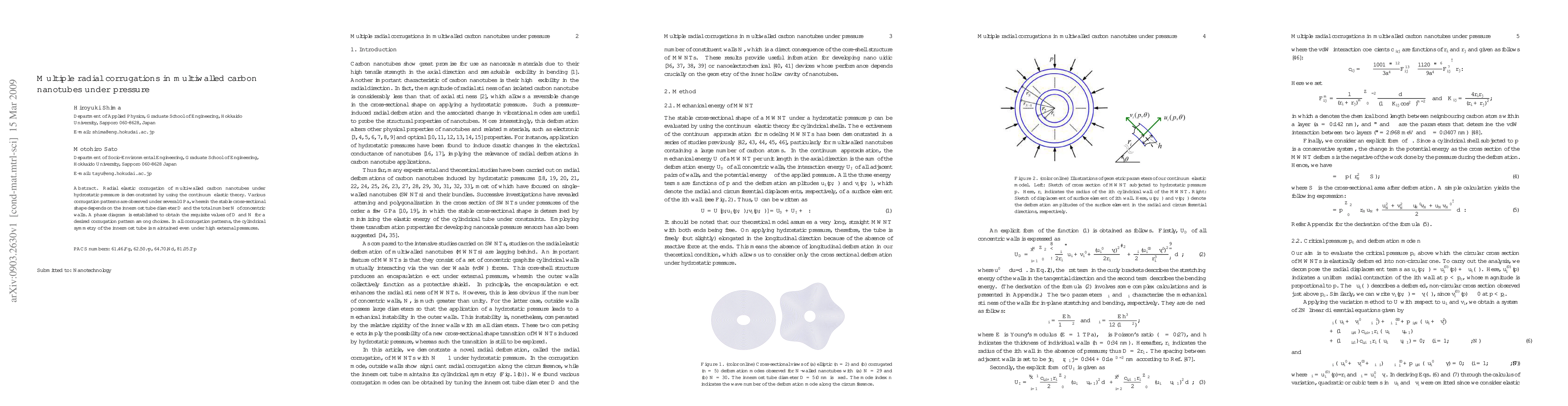 This study demonstrates the radial elastic corrugation of multiwalled carbon nanotubes under high pressure using continuum elastic theory, revealing various stable corrugation patterns dependent on the innermost tube diameter and the number of concentric walls. A phase diagram is established to predict desired corrugation patterns based on these parameters, maintaining cylindrical symmetry even under high pressure.