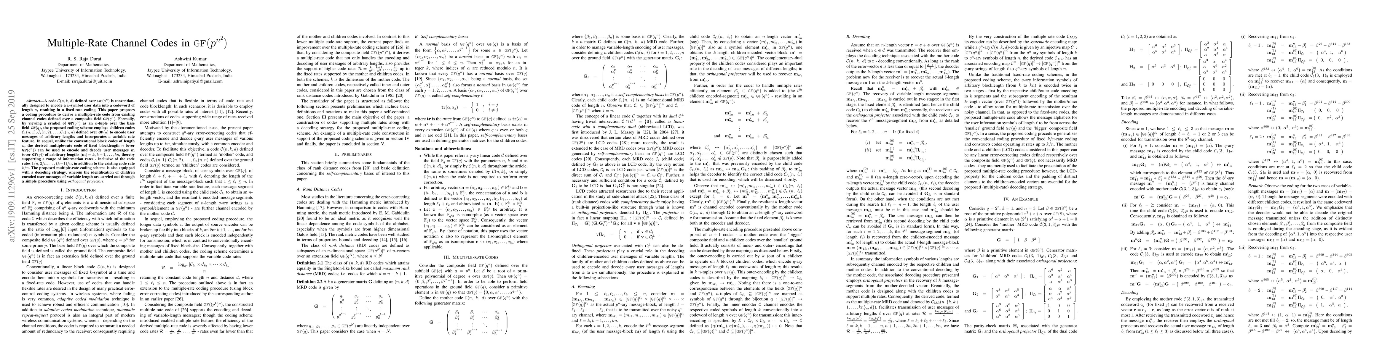 This paper proposes a multiple-rate coding scheme for channel codes defined over $\texttt{GF}(p^{n^{2}})$, utilizing children codes over $\texttt{GF}(q)$ to encode user messages of arbitrary lengths. The scheme supports a range of information rates, including variable rates, beyond the conventional fixed-rate coding.