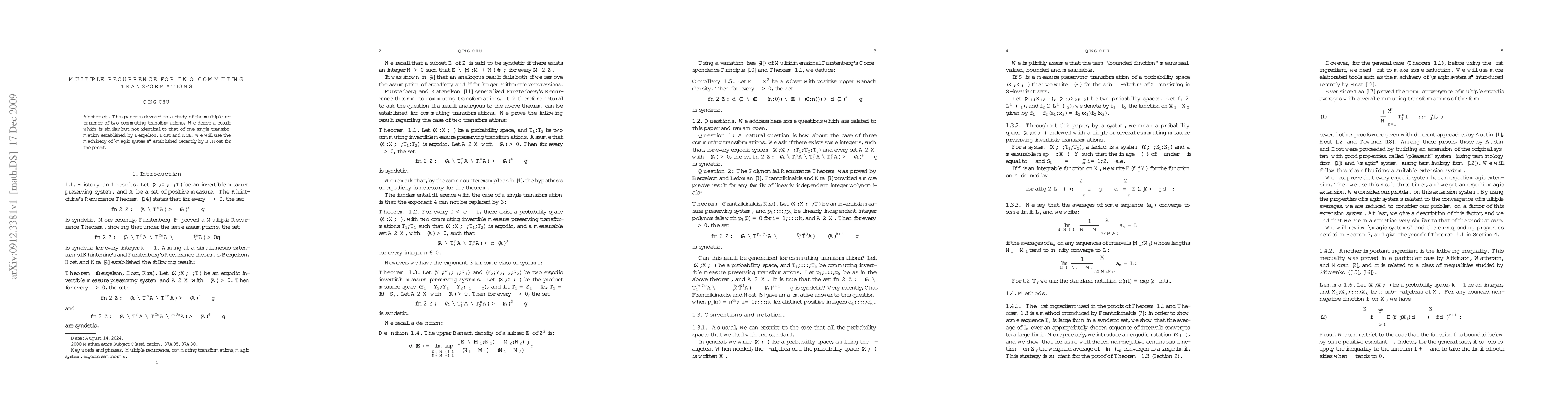 This paper investigates the multiple recurrence properties of two commuting transformations, deriving results analogous to those for a single transformation by Bergelson, Host, and Kra, using B. Host's "magic systems" framework.