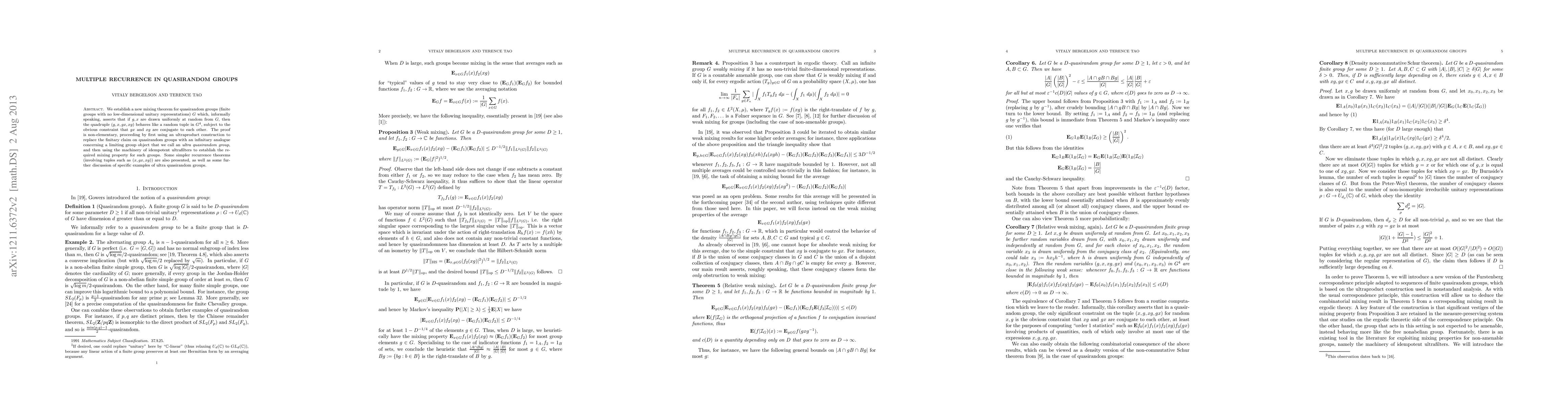 This paper proves a new mixing theorem for quasirandom groups, showing quadruples behave like random tuples in a limiting group object called an ultra quasirandom group, using ultraproduct construction and idempotent ultrafilters. It also discusses simpler recurrence theorems and examples of ultra quasirandom groups.