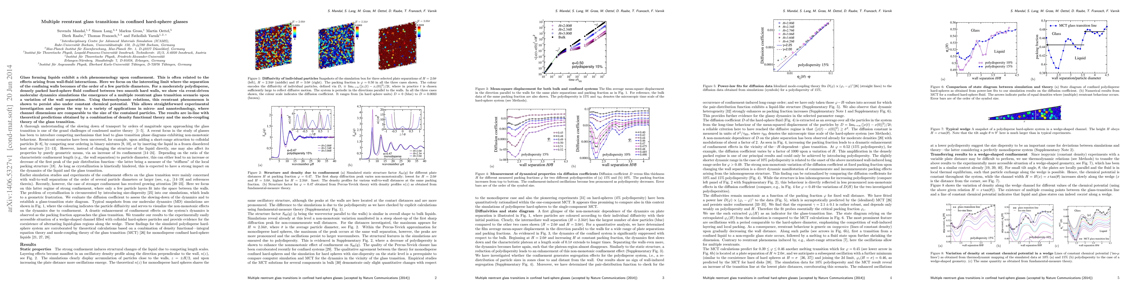 This paper investigates the complex behavior of confined hard-sphere glasses, revealing multiple reentrant glass transitions as wall separation varies. Molecular dynamics simulations and theoretical models show this phenomenon persists under constant chemical potential, offering potential applications in micro- and nanotechnology.