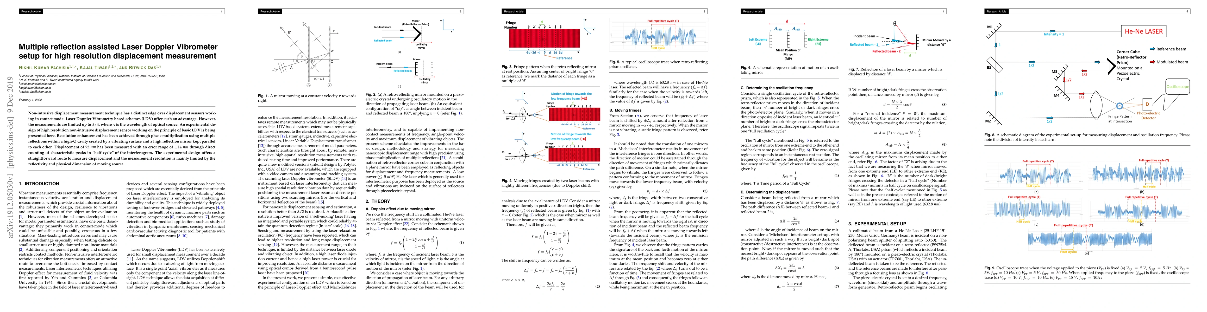 Researchers developed a high-resolution non-intrusive displacement sensor using Laser Doppler Vibrometry with multiple reflections in a cavity, achieving displacements as low as 72 nm.
