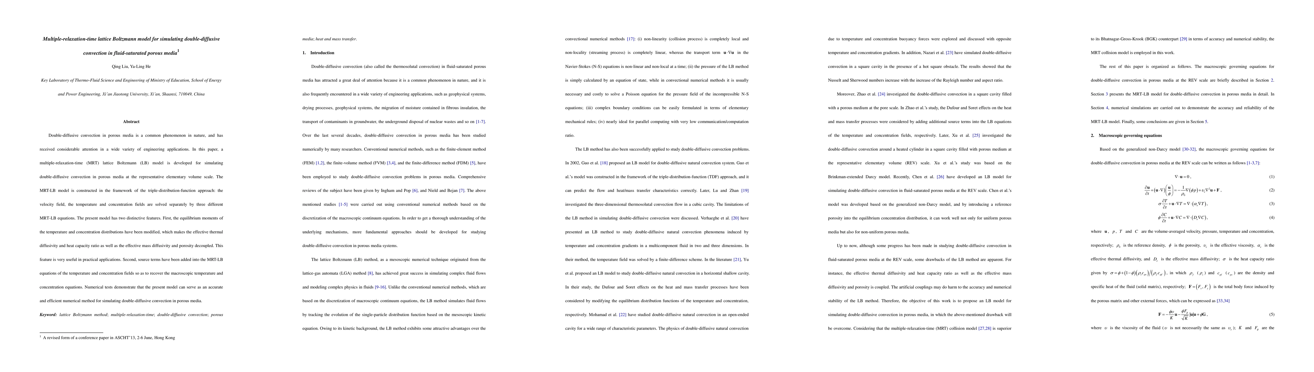 This paper develops a multiple-relaxation-time lattice Boltzmann model for simulating double-diffusive convection in fluid-saturated porous media, featuring modified equilibrium moments and added source terms for accurate representation of thermal and mass transport. Numerical tests confirm its efficiency and accuracy.