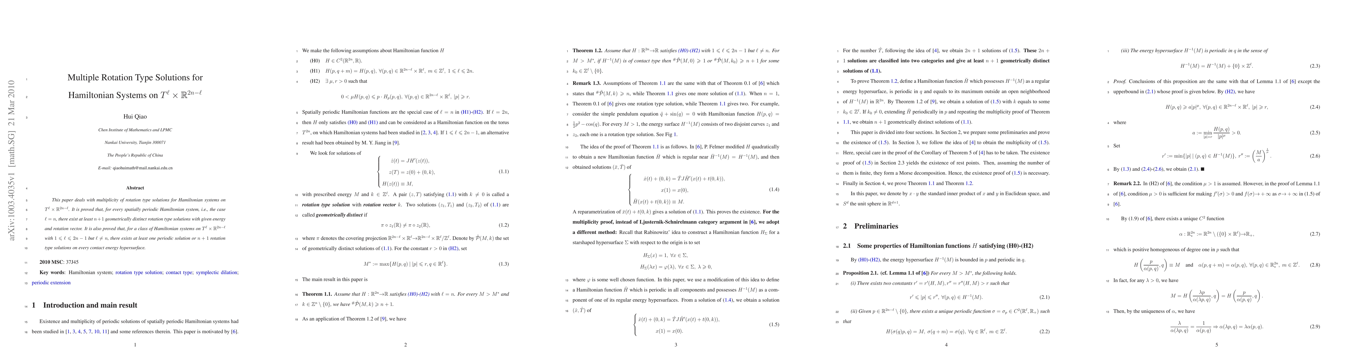This paper deals with multiplicity of rotation type solutions for Hamiltonian systems on $T^\ell\times \mathbb{R}^{2n-\ell}$. It is proved that, for every spatially periodic Hamiltonian system, i.e., the case $\ell=n$, there exist at least $n+1$ geometrically distinct rotation type solutions with given energy rotation vector. It is also proved that, for a class of Hamiltonian systems on $T^\ell\times\mathbb{R}^{2n-\ell}$ with $1\leqslant\ell\leqslant 2n-1$ but $\ell\neq n$, there exists at least one periodic solution or $n+1$ rotation type solutions on every contact energy hypersurface.