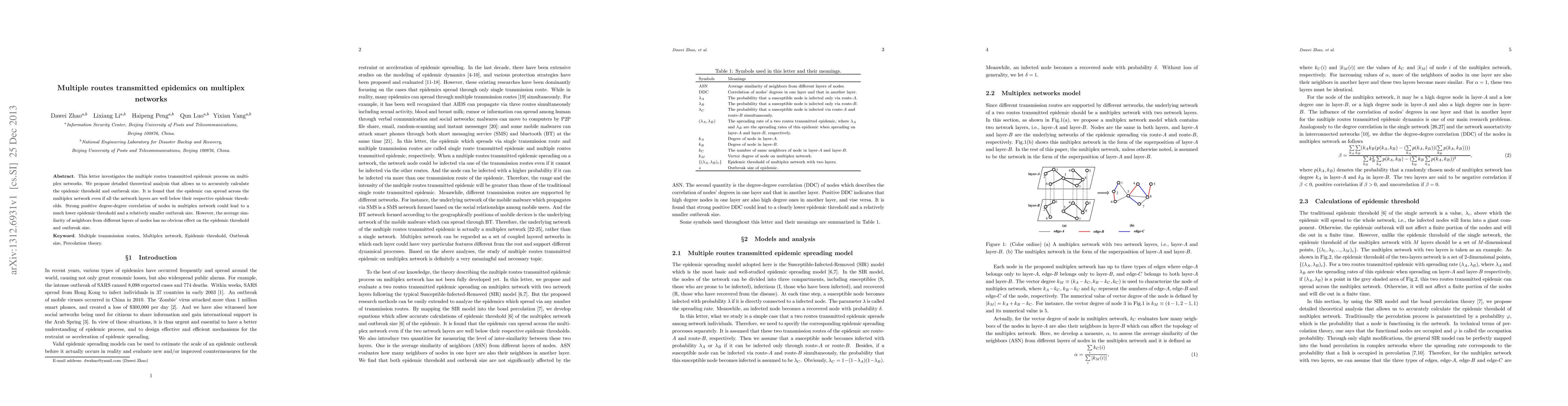 This paper explores how epidemics spread across multiplex networks through multiple transmission routes, revealing that even if individual layers are below their epidemic thresholds, the overall network can still experience outbreaks. The study finds that strong node correlation across layers lowers the epidemic threshold and reduces outbreak size, while neighbor similarity across layers has negligible impact.