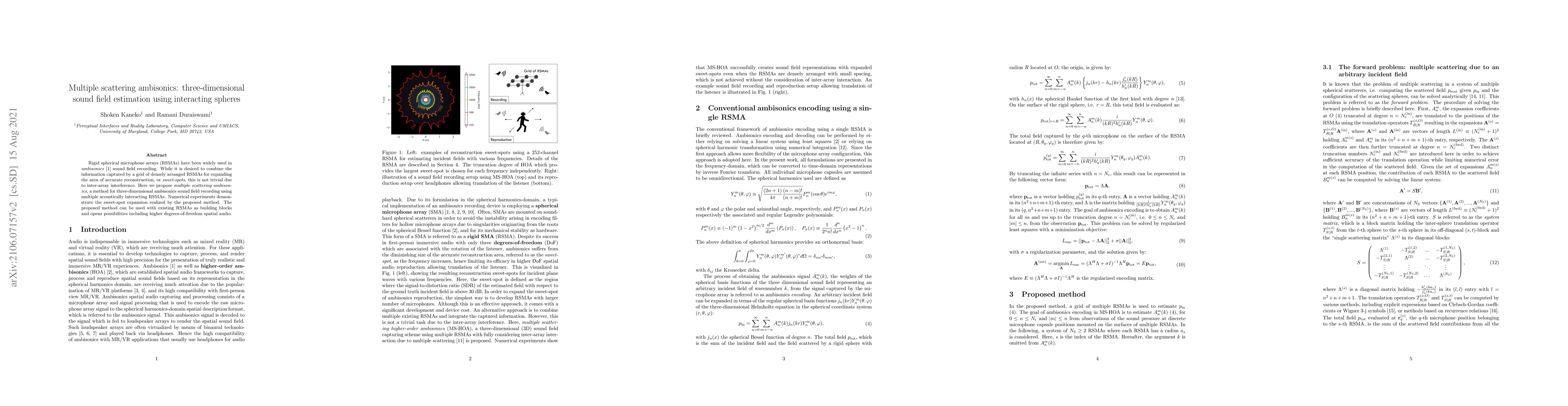 This paper proposes multiple scattering ambisonics, a method for enhancing three-dimensional sound field recording using interacting rigid spherical microphone arrays (RSMA). The technique effectively expands the sweet-spots for accurate reconstruction by combining information from densely arranged RSMAs, overcoming inter-array interference.