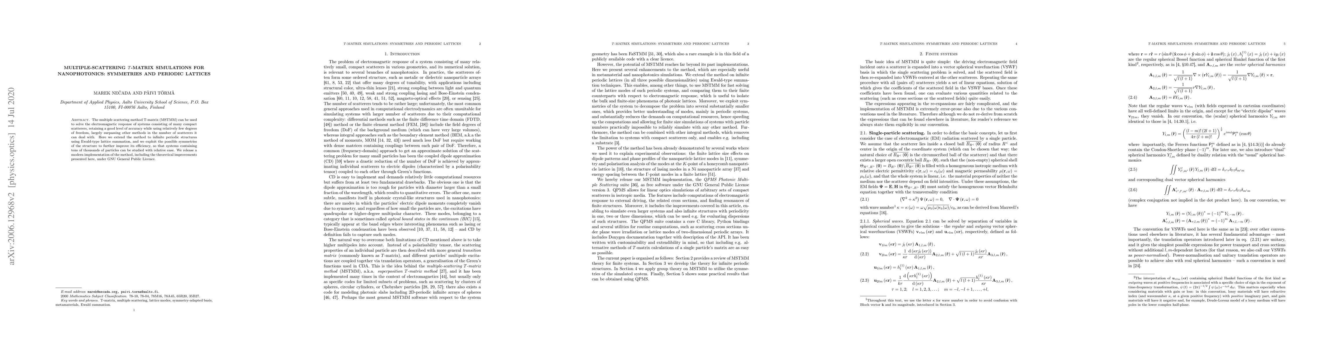This research introduces an extended Multiple Scattering T-matrix Method (MSTMM) for simulating infinite periodic structures using Ewald-type lattice summation. By leveraging structural symmetries, the method efficiently handles systems with tens of thousands of particles, significantly outperforming existing techniques.