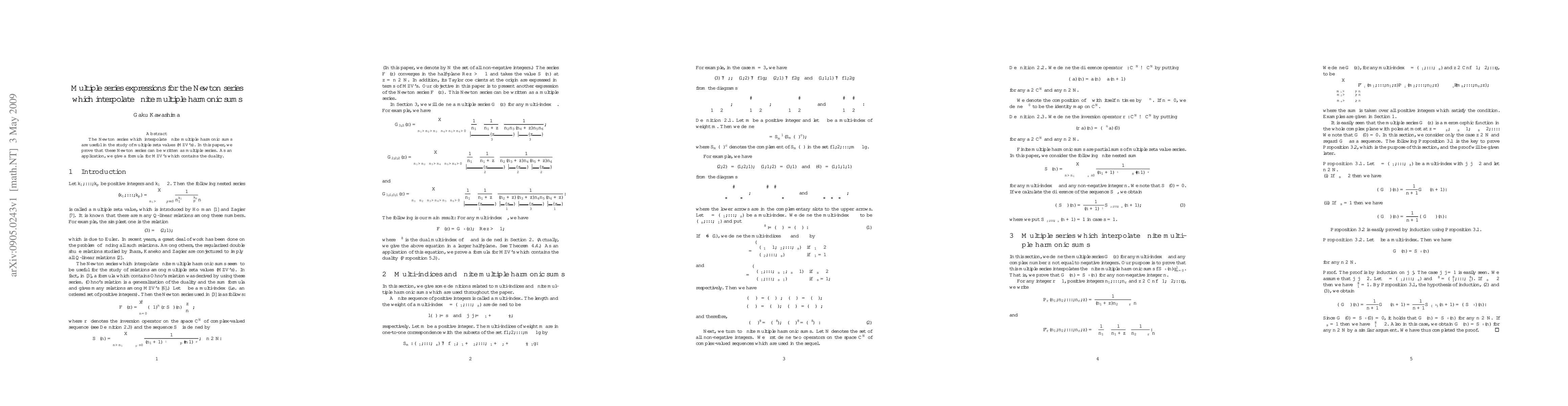 The Newton series which interpolate finite multiple harmonic sums are useful in the study of multiple zeta values (MZV's). In this paper, we prove that these Newton series can be written as multiple series. As an application, we give a formula for MZV's which contains the duality.
