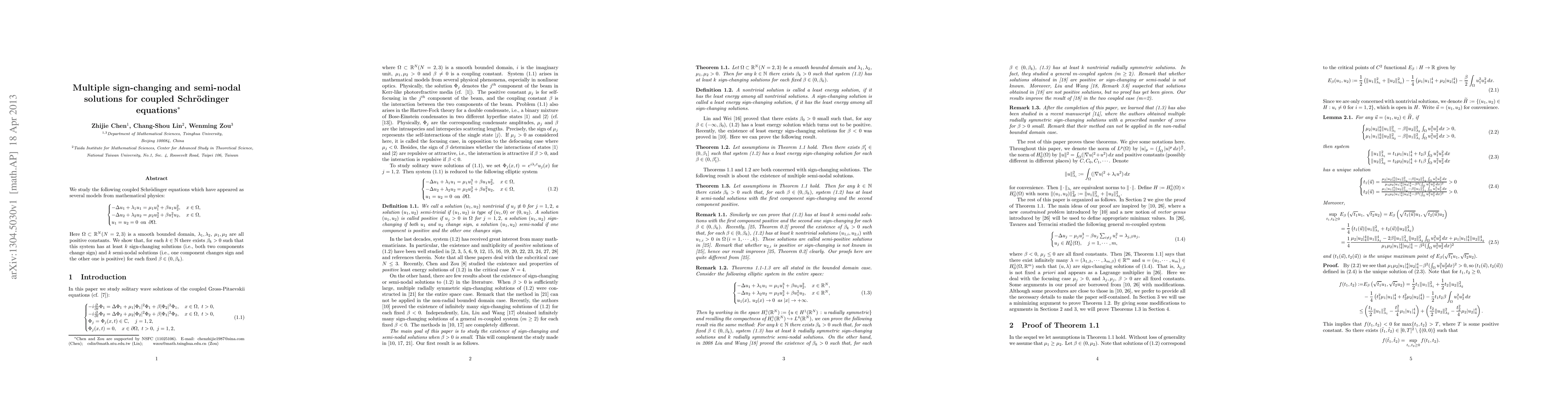 This paper investigates coupled Schrödinger equations arising in mathematical physics, proving the existence of multiple sign-changing and semi-nodal solutions under specific conditions. The study demonstrates that for each natural number \( k \), there exists a threshold \( \bb_k \) ensuring \( k \) solutions with distinct sign patterns for each \( \bb \) within \( (0, \bb_k) \).