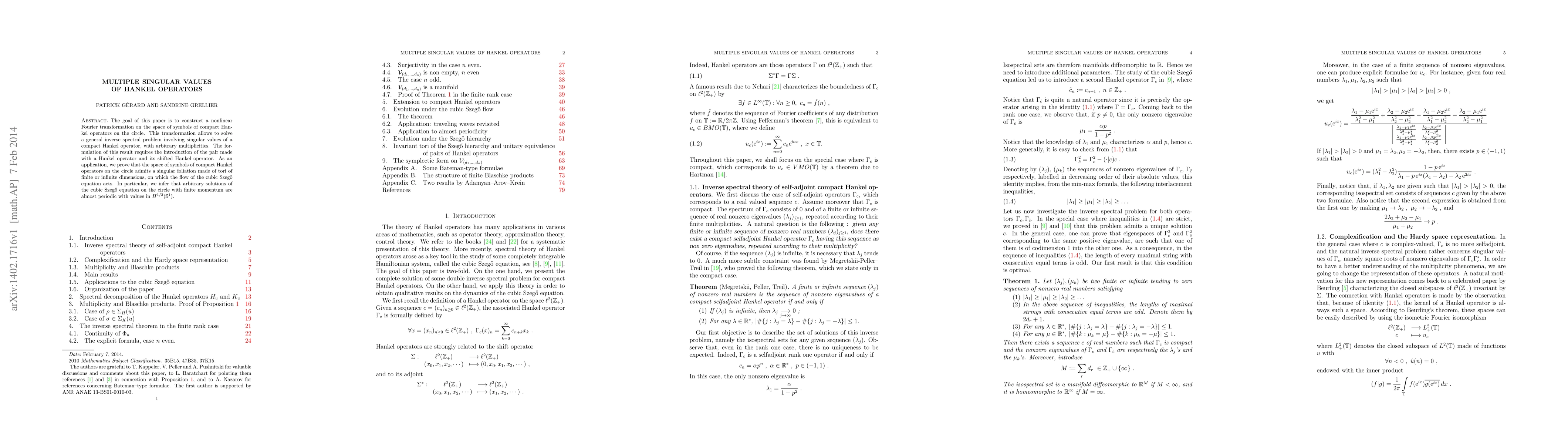 This paper introduces a nonlinear Fourier transformation to solve inverse problems related to singular values of compact Hankel operators on the circle, featuring multiplicities. It also reveals that solutions of the cubic Szegő equation on the circle with finite momentum exhibit almost periodicity in H^{1/2}(S ^1), supported by a singular foliation of symbol spaces into tori of finite or infinite dimensions.