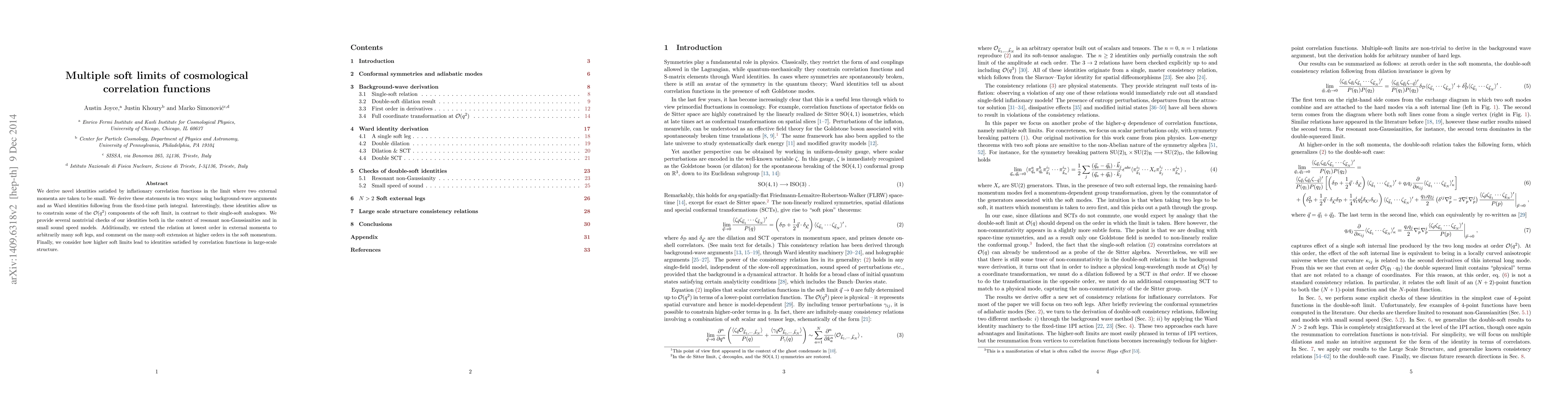 This paper derives new identities for inflationary correlation functions when two external momenta are small, using both background-wave arguments and Ward identities. It extends the soft limit to multiple soft momenta, providing constraints on O(q^2) components and checking these identities in resonant non-Gaussianities and small sound speed models.