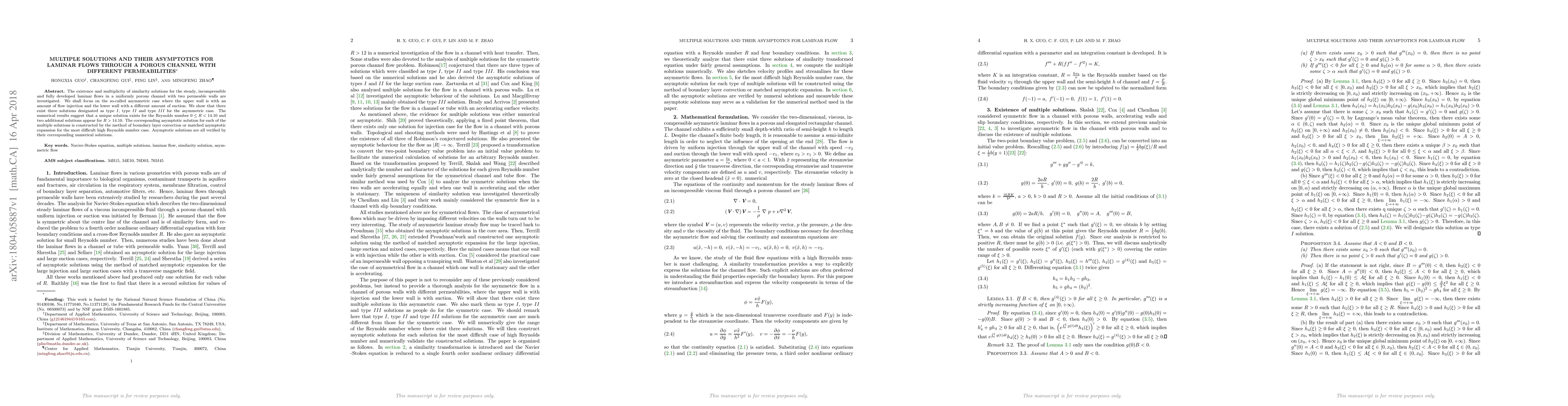 Research investigates steady laminar flow in a porous channel with two permeable walls, finding three solutions and analyzing their asymptotic behavior for high Reynolds numbers.