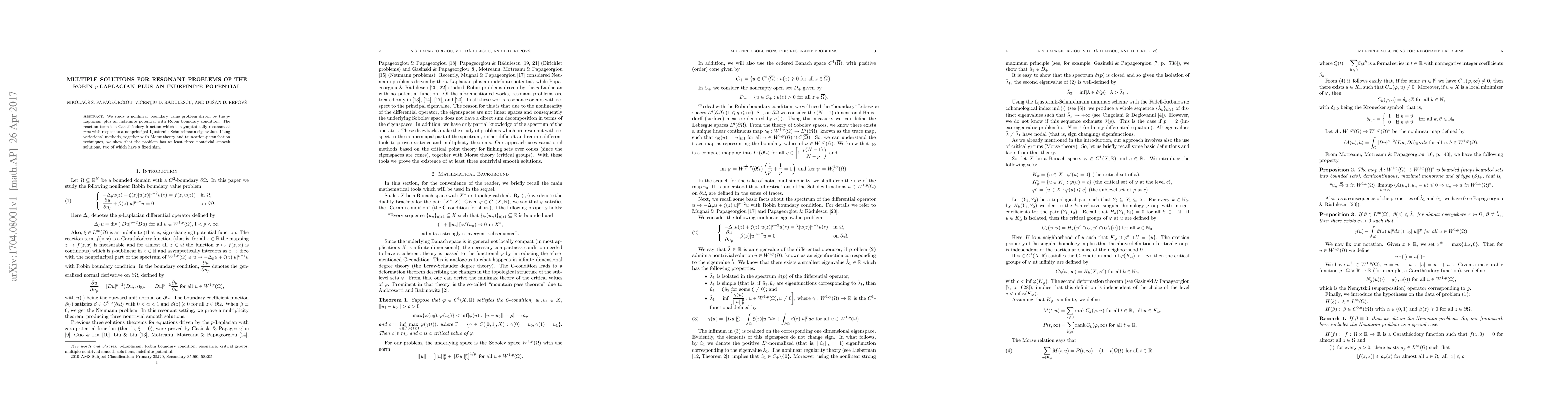 We study a nonlinear boundary value problem driven by the $p$-Laplacian plus an indefinite potential with Robin boundary condition. The reaction term is a Carath\'eodory function which is asymptotically resonant at $\pm\infty$ with respect to a nonprincipal Ljusternik-Schnirelmann eigenvalue. Using variational methods, together with Morse theory and truncation-perturbation techniques, we show that the problem has at least three nontrivial smooth solutions, two of which have a fixed sign.