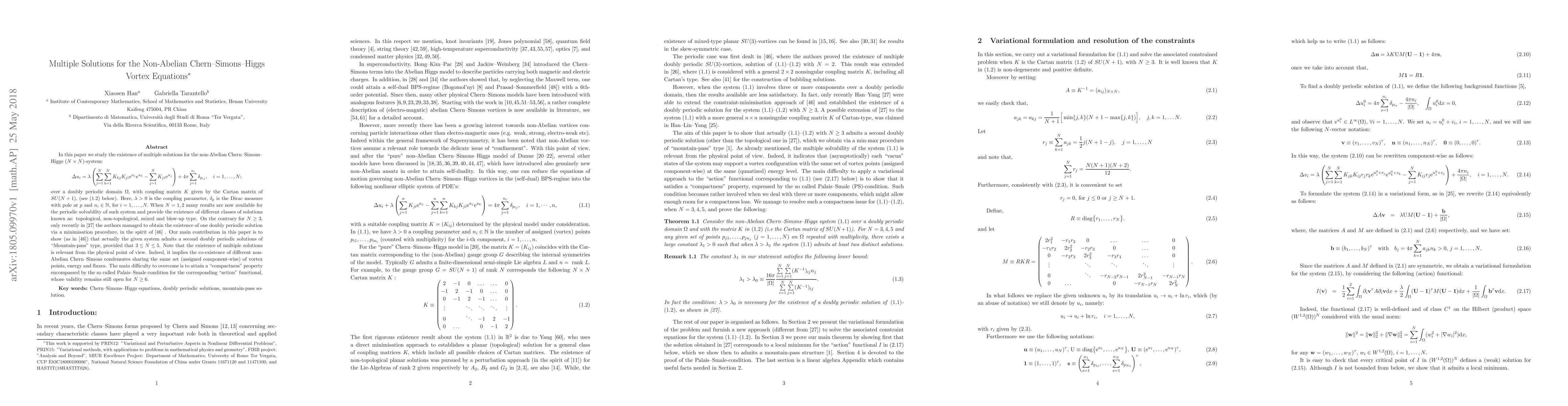This paper investigates the existence of multiple solutions for the non-Abelian Chern-Simons-Higgs vortex equations over a doubly periodic domain. The authors demonstrate the existence of a second doubly periodic solution of "Mountain-pass" type for \(N = 3, 4, 5\), extending previous results for \(N = 1, 2\).