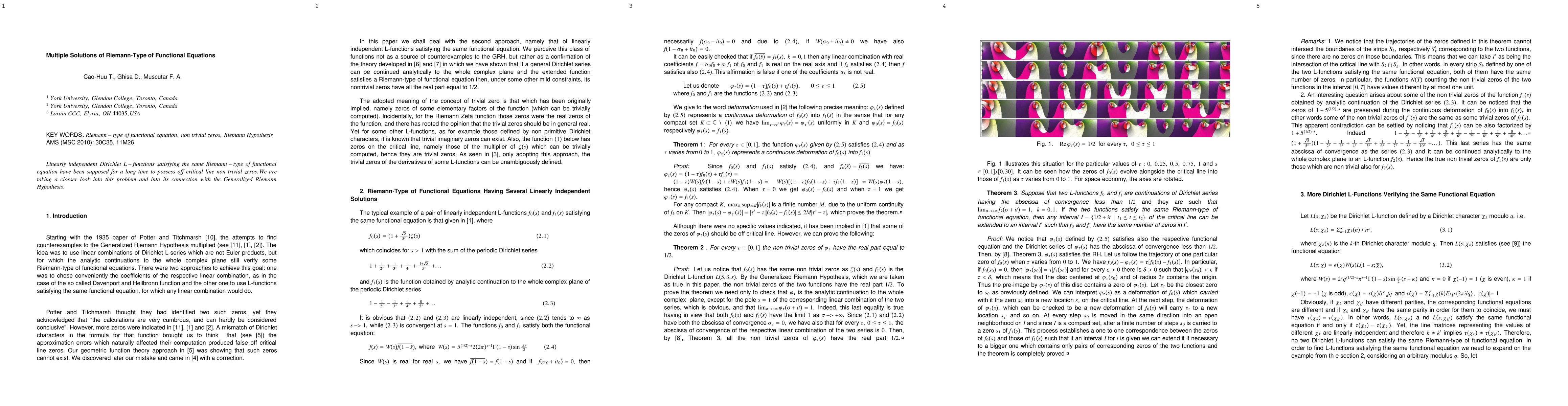Linearly independent Dirichlet L-functions satisfying the same Riemann-type of functional equation have been supposed for long time to possess off critical line non trivial zeros. We are taking a closer look into this problem and into its connection with the Generalized Riemann Hypothesis