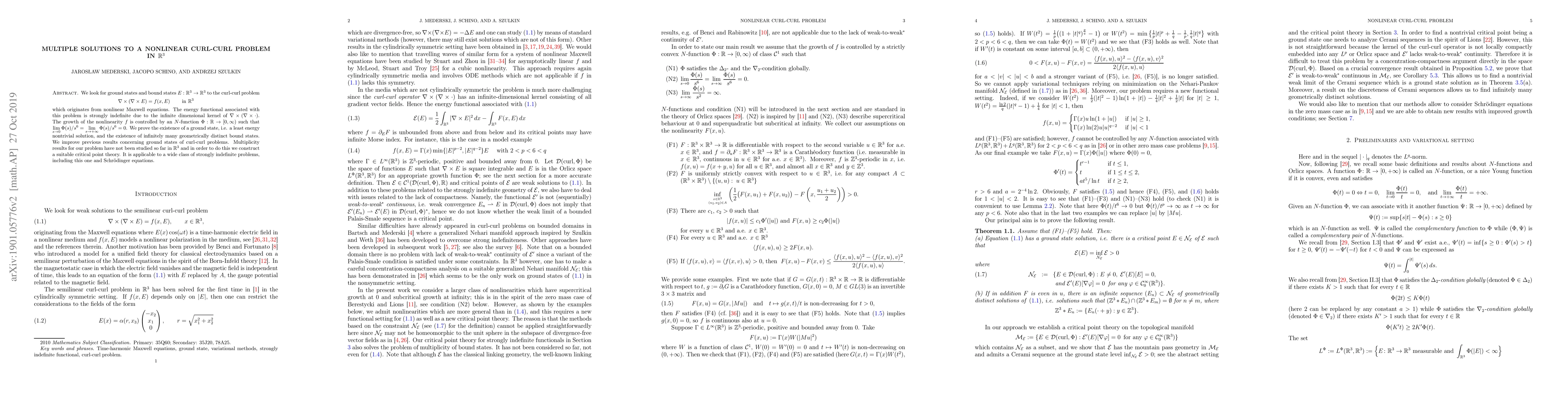 We look for ground states and bound states $E:\mathbb{R}^3\to\mathbb{R}^3$ to the curl-curl problem $$\nabla\times(\nabla\times E)= f(x,E) \qquad\hbox{in } \mathbb{R}^3$$ which originates from nonlinear Maxwell equations. The energy functional associated with this problem is strongly indefinite due to the infinite dimensional kernel of $\nabla\times(\nabla\times \cdot)$. The growth of the nonlinearity $f$ is controlled by an $N$-function $\Phi:\mathbb{R}\to [0,\infty)$ such that $\displaystyle\lim_{s\to 0}\Phi(s)/s^6=\lim_{s\to+\infty}\Phi(s)/s^6=0$. We prove the existence of a ground state, i.e. a least energy nontrivial solution, and the existence of infinitely many geometrically distinct bound states. We improve previous results concerning ground states of curl-curl problems. Multiplicity results for our problem have not been studied so far in $\mathbb{R}^3$ and in order to do this we construct a suitable critical point theory. It is applicable to a wide class of strongly indefinite problems, including this one and Schr\"odinger equations.