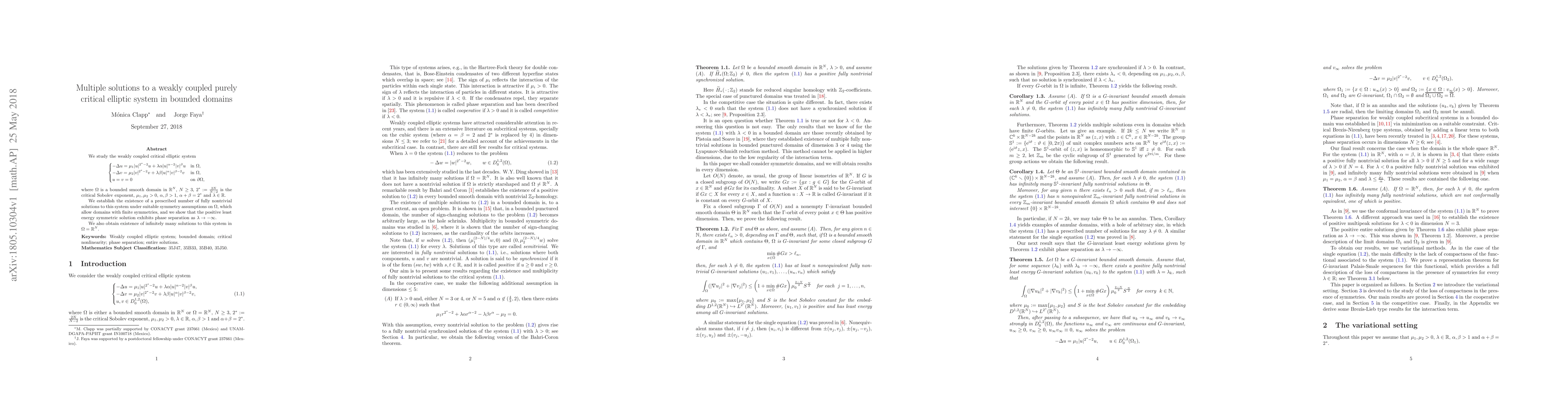 This paper investigates the existence of multiple nontrivial solutions for a weakly coupled critical elliptic system in bounded domains, establishing the presence of a prescribed number of solutions under symmetry assumptions. It also demonstrates phase separation in the least energy symmetric solution as a parameter tends to negative infinity, and proves the existence of infinitely many solutions in the whole space.