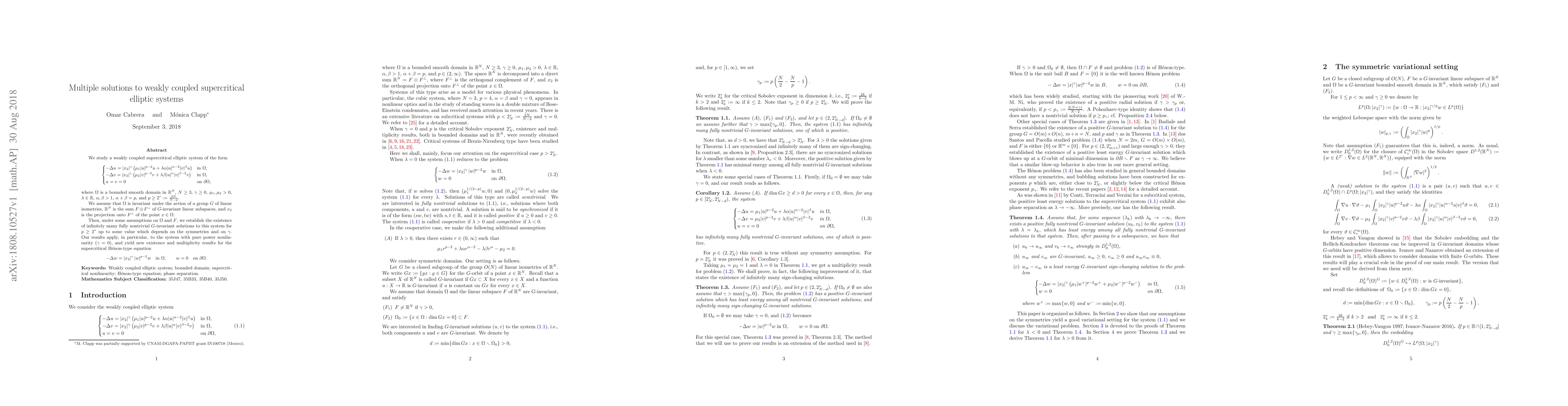 This paper investigates the existence of multiple solutions for a weakly coupled supercritical elliptic system with nonlinear terms. It establishes the existence of infinitely many nontrivial, symmetry-preserving solutions under certain conditions on the domain and coupling parameters, extending results to the supercritical Hénon-type equation.