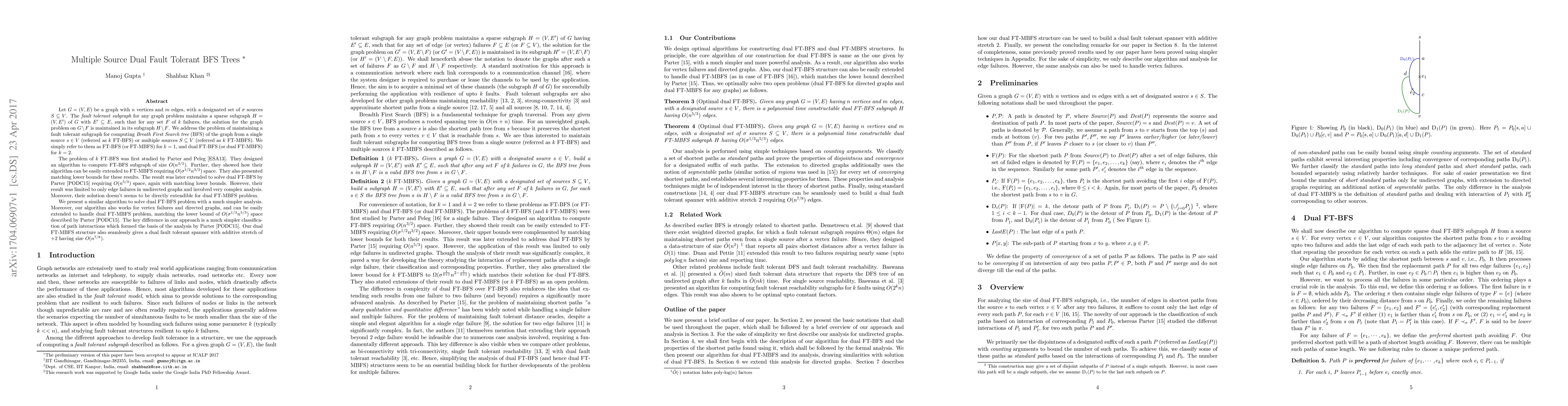 Let $G=(V,E)$ be a graph with $n$ vertices and $m$ edges, with a designated set of $\sigma$ sources $S\subseteq V$. The fault tolerant subgraph for any graph problem maintains a sparse subgraph $H$ of $G$, such that for any set $F$ of $k$ failures, the solution for the graph problem on $G\setminus F$ is maintained in $H\setminus F$. We address the problem of maintaining a fault tolerant subgraph for Breath First Search tree (BFS) of the graph from a single source $s\in V$ (referred as $k$ FT-BFS) or multiple sources $S\subseteq V$ (referred as $k$ FT-MBFS). The problem of $k$ FT-BFS was first studied by Parter and Peleg [ESA13]. They designed an algorithm to compute FT-BFS subgraph of size $O(n^{3/2})$. Further, they showed how their algorithm can be easily extended to FT-MBFS requiring $O(\sigma^{1/2}n^{3/2})$ space. They also presented matching lower bounds for these results. The result was later extended to solve dual FT-BFS by Parter [PODC15] requiring $O(n^{5/3})$ space, again with matching lower bounds. However, their result was limited to only edge failures in undirected graphs and involved very complex analysis. Moreover, their solution doesn't seems to be directly extendible for dual FT-MBFS problem. We present a similar algorithm to solve dual FT-BFS problem with a much simpler analysis. Moreover, our algorithm also works for vertex failures and directed graphs, and can be easily extended to handle dual FT-MBFS problem, matching the lower bound of $O(\sigma^{1/3}n^{5/3})$ space described by Parter [PODC15].The key difference in our approach is a much simpler classification of path interactions which formed the basis of the analysis by Parter [PODC15]. Our dual FT-MBFS structure also seamlessly gives a dual fault tolerant spanner with additive stretch of +2 having size $O(n^{7/8})$.