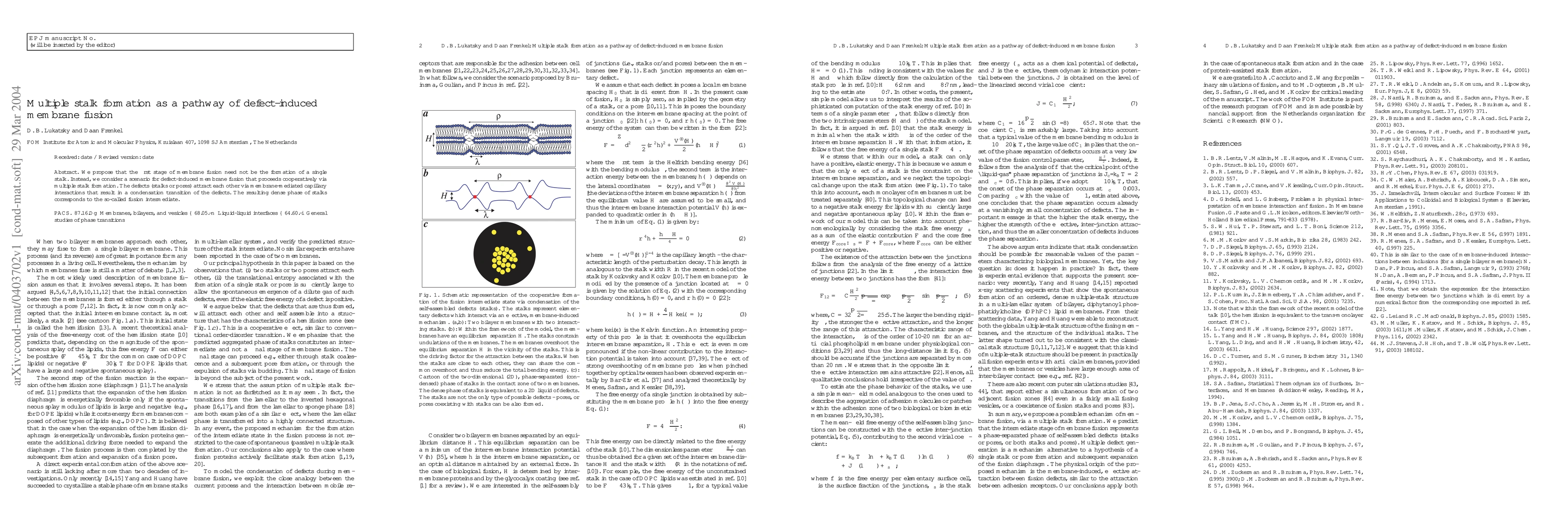This paper proposes that membrane fusion can occur through the cooperative formation of multiple stalks rather than a single stalk, driven by defect-induced capillary interactions that lead to a dense phase of stalks, termed the fusion intermediate.